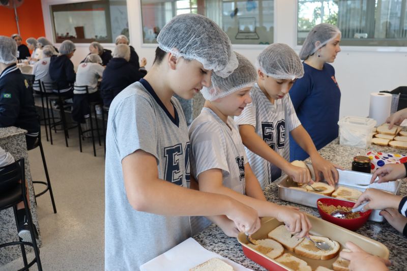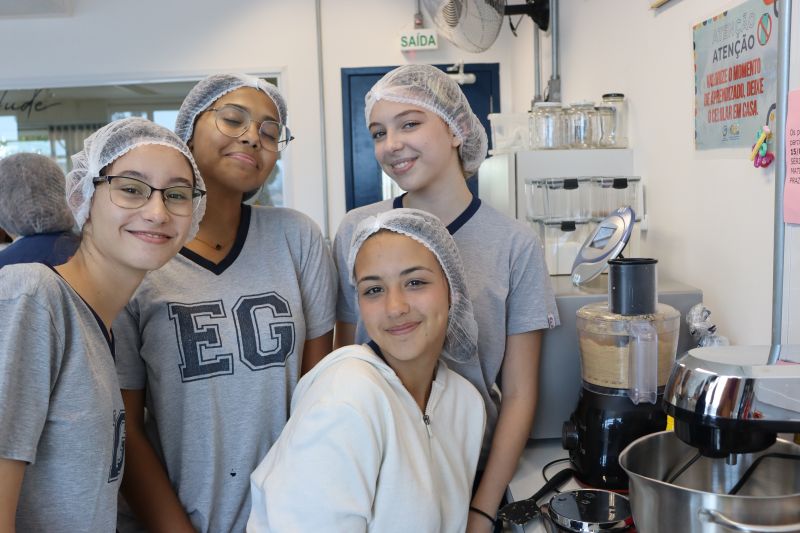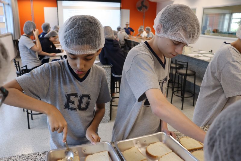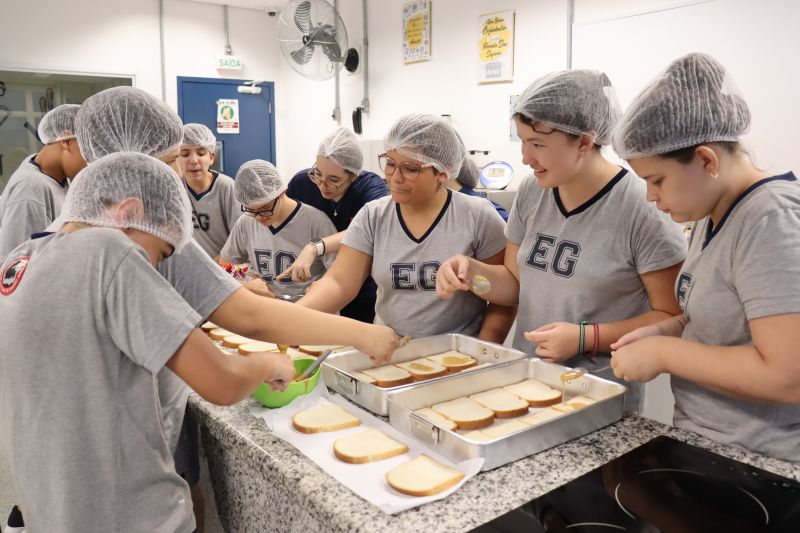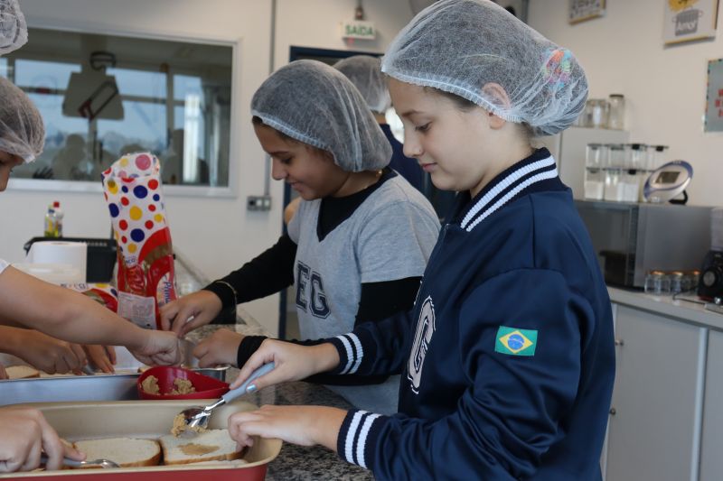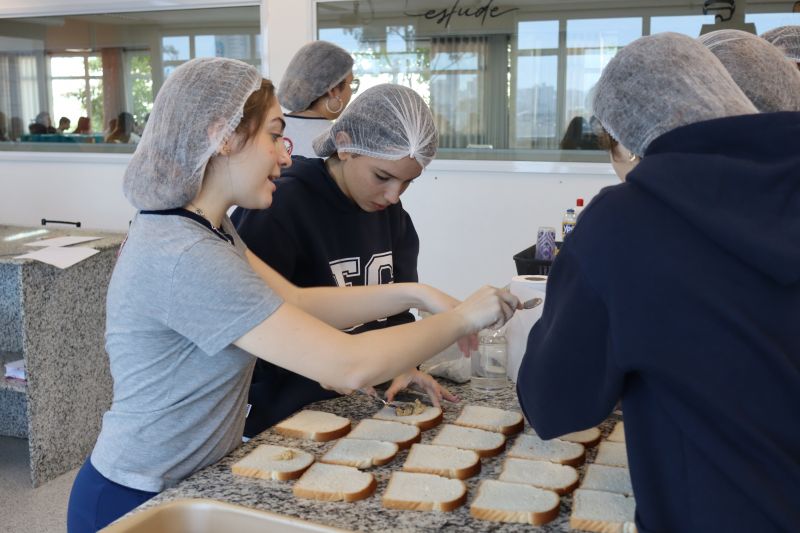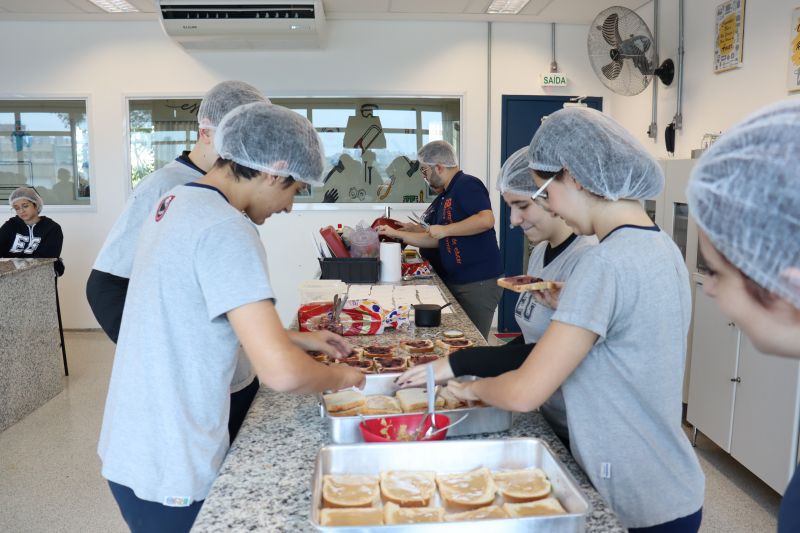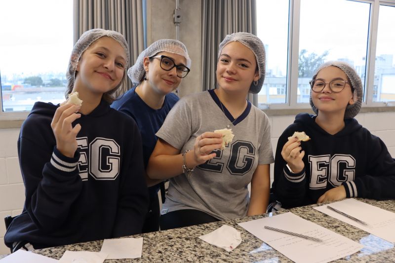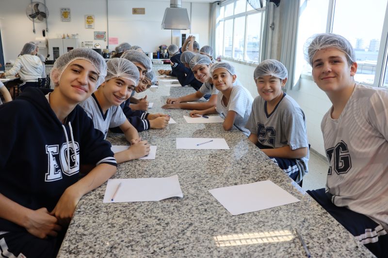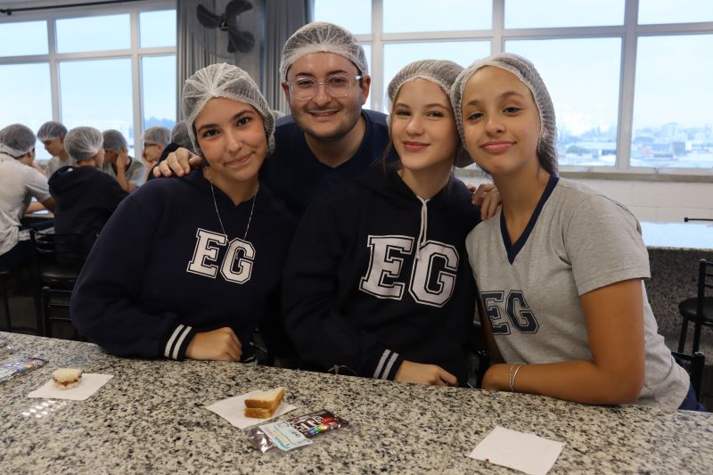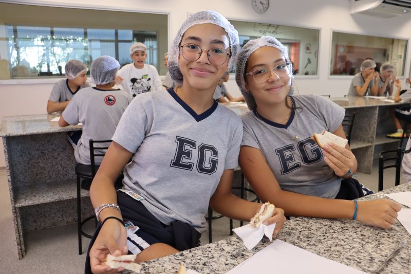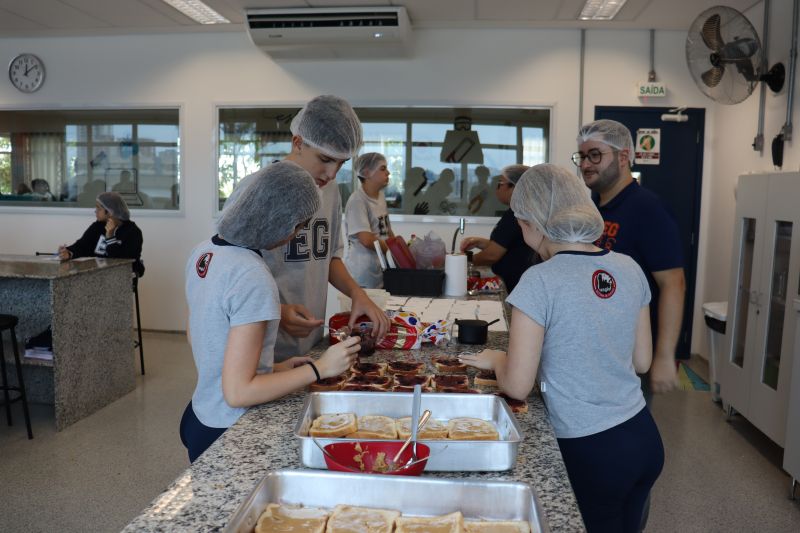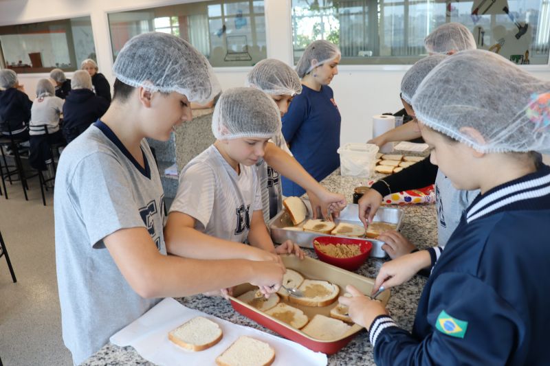 Os alunos do 9º ano encerraram a Unit 2 – What Makes Us Happy?, com o mesmo preparo culinário. A proposta foi apresentar um elemento cultural dos Estados Unidos, aliando a prática e o aprendizado. Após a preparação da receita, os estudantes produziram um relatório, em inglês, sobre a experiência.