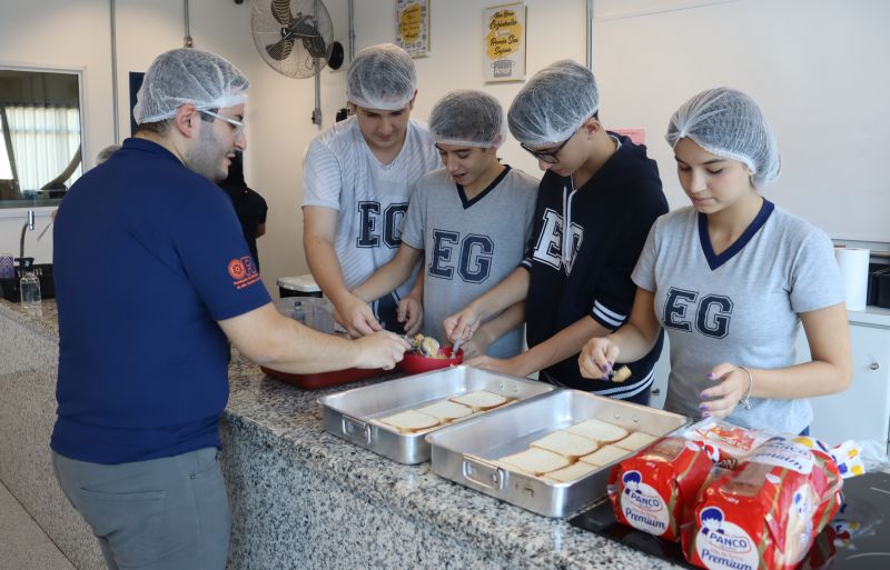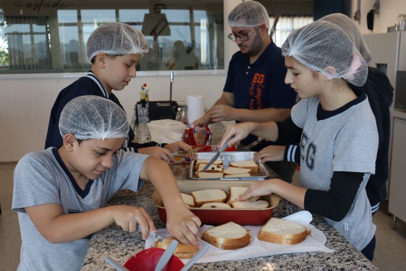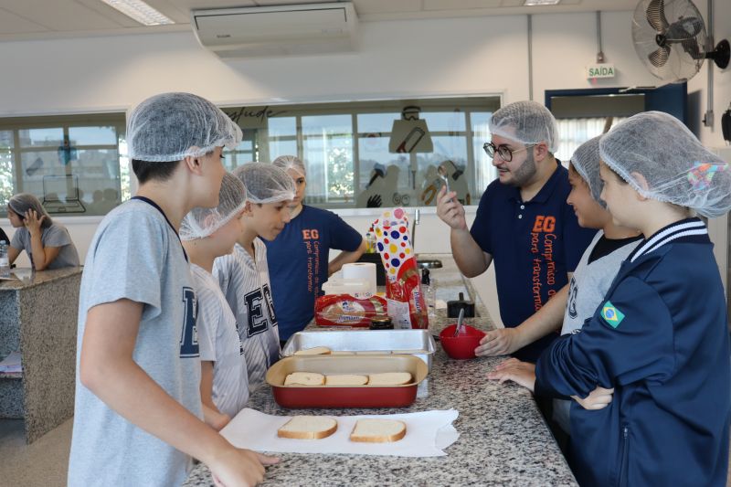 Durante as aulas de Inglês, os alunos de 7º e 9º anos do EF participaram de uma divertida Cooking Class, conduzida pelos Teachers Angélica, Giovanna, Henrique e Lilian.