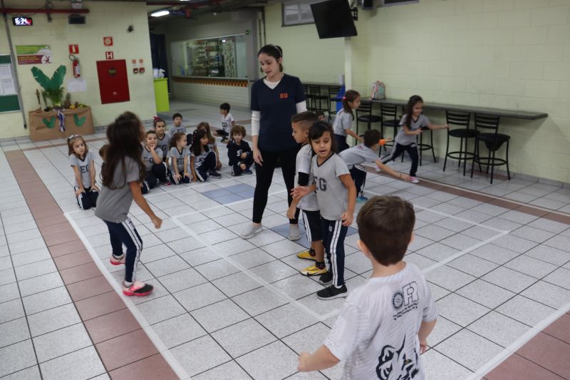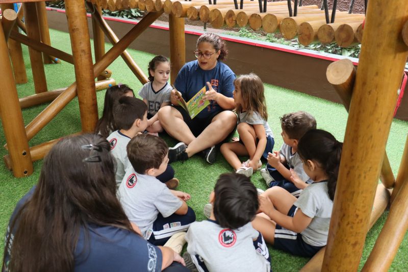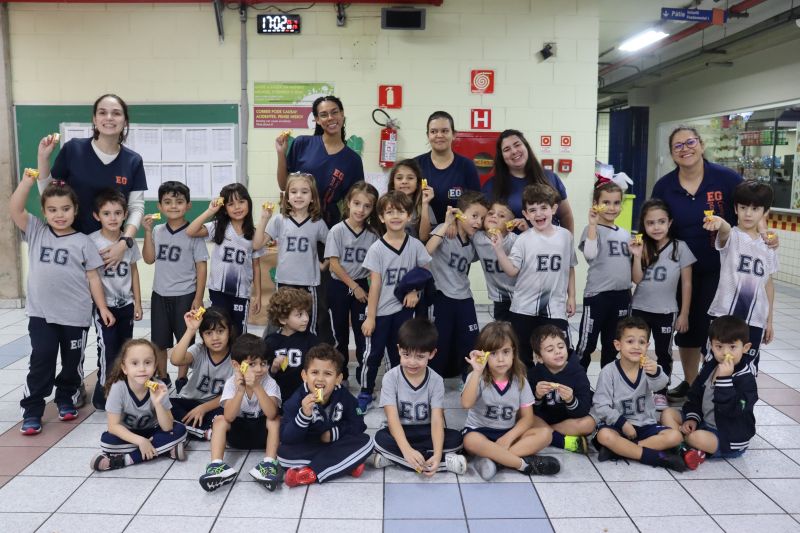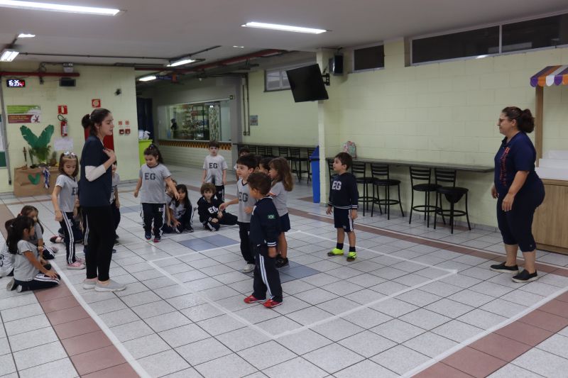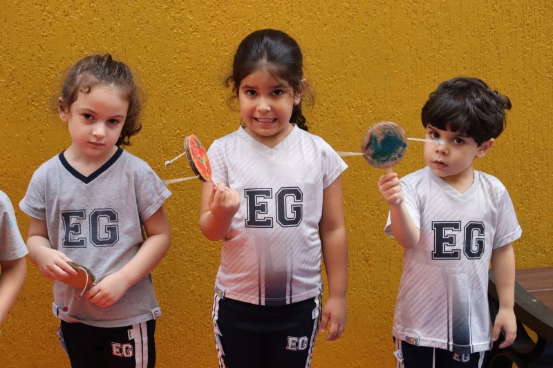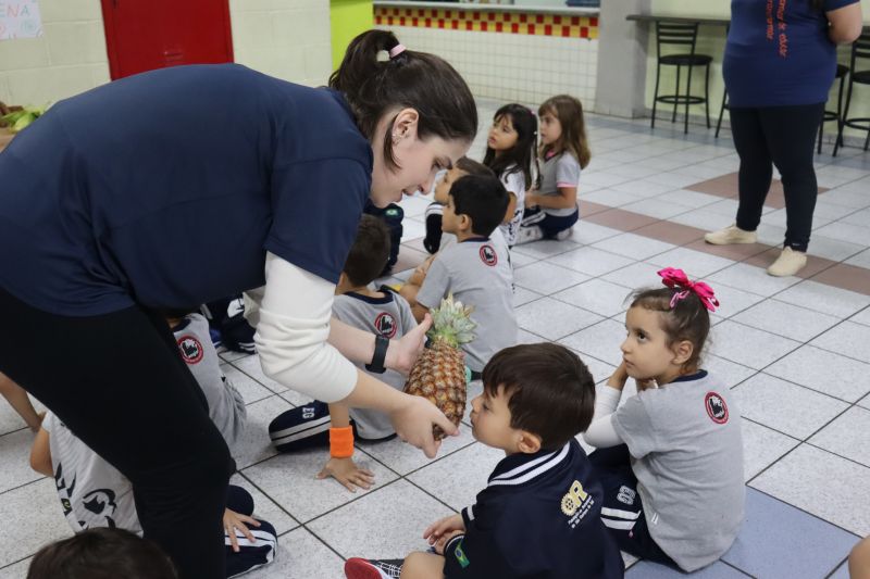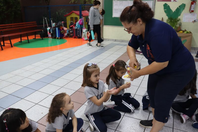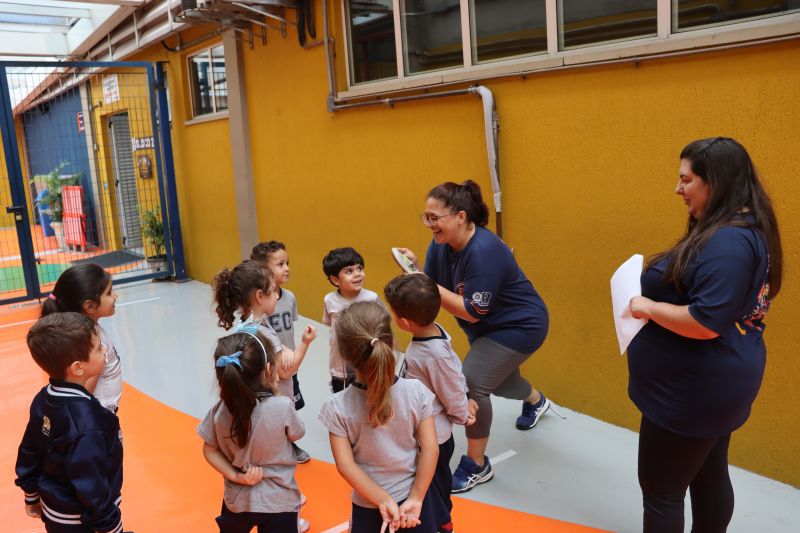No pátio da Ed. Infantil, o Nível 2 juntou-se ao Nível 1 para brincar de tucunaré e apreciar uma exposição de objetos que fazem parte da vida dos povos indígenas, como adereços, utensílios de cozinha, ferramentas de caça e brinquedos, entre outros itens, organizada pelas Professoras Luciana e Helena.
