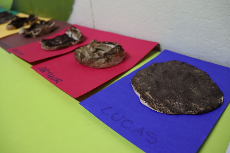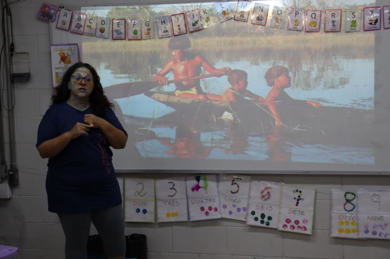 Os alunos confeccionaram um cabuletê (instrumento de percussão de origem africana), fizeram um prato de argila com tinta natural extraída do café, confeccionaram uma canoa feita de caixa de papelão e a decoraram com canetinhas e, por fim, brincaram de João Sapateiro, brincadeira típica indígena.