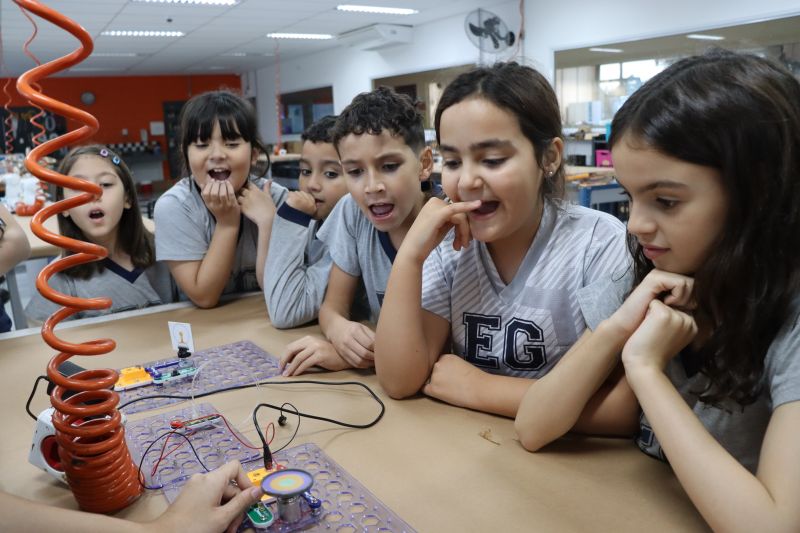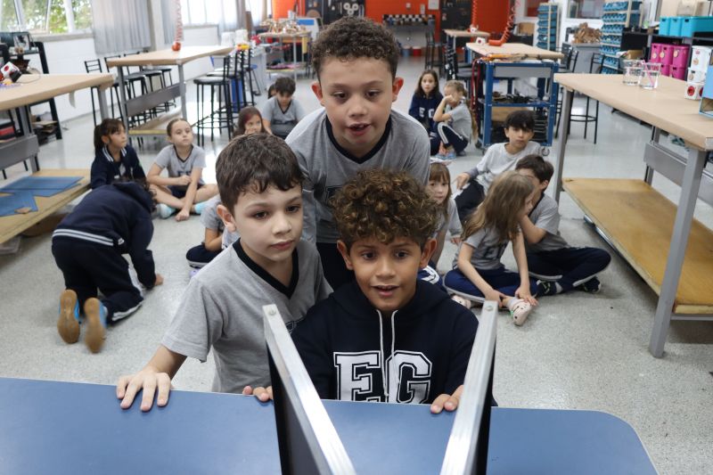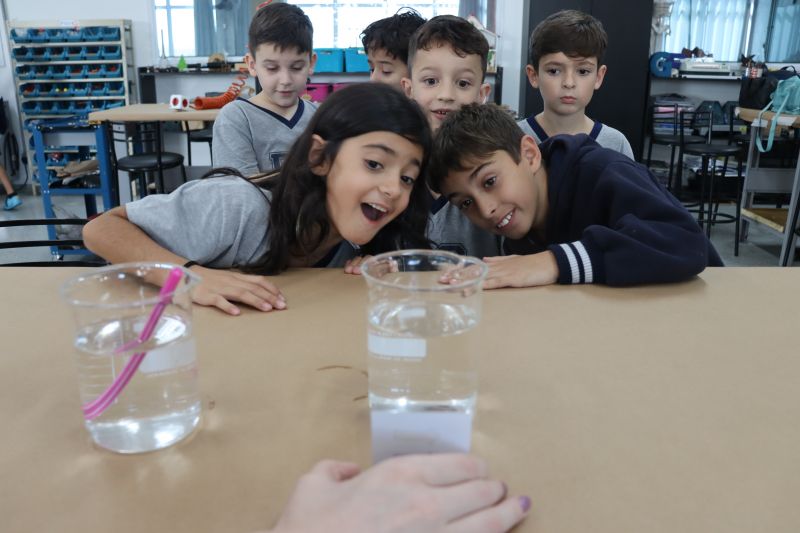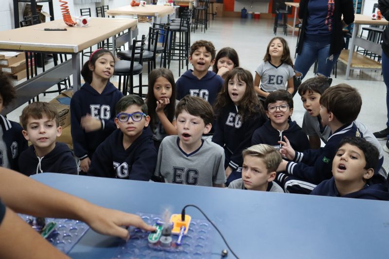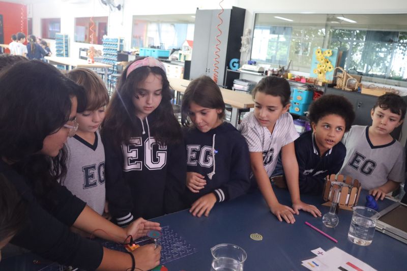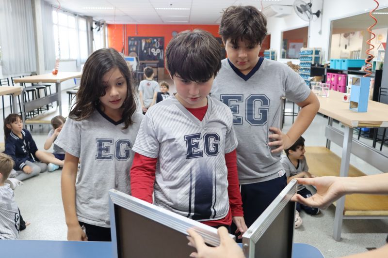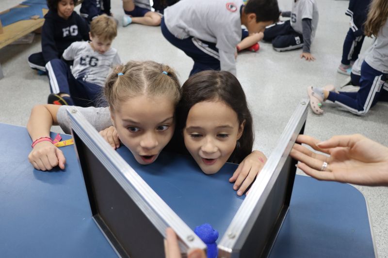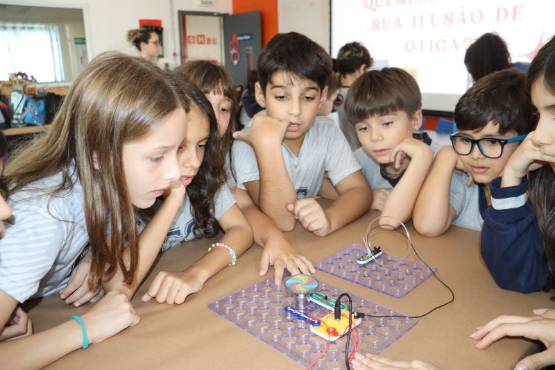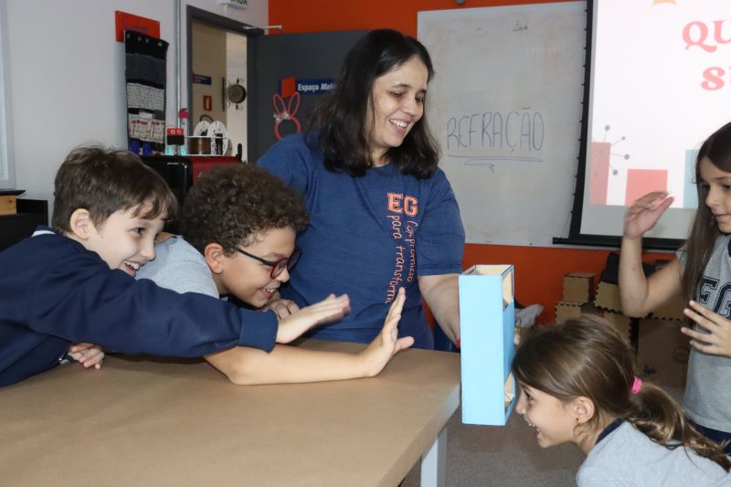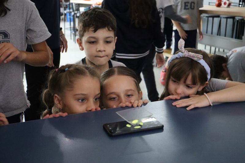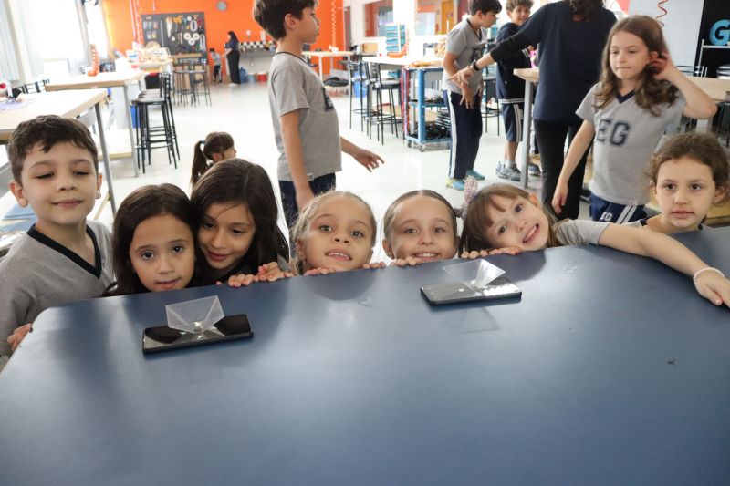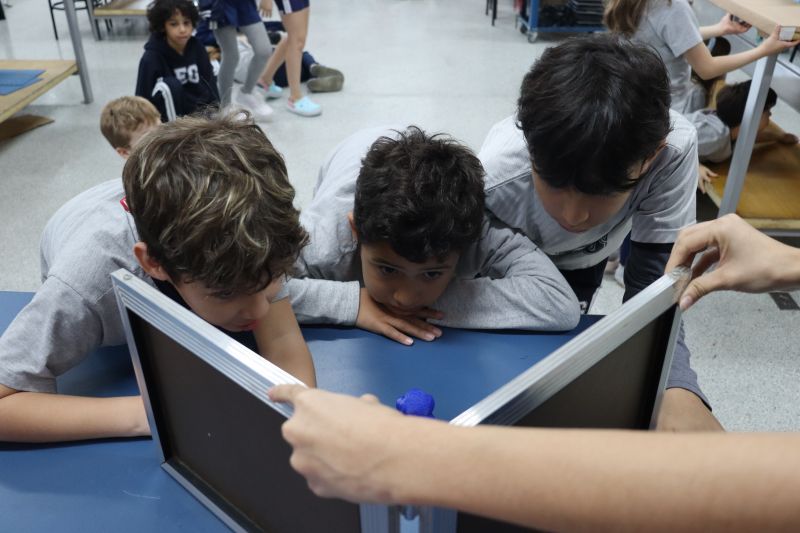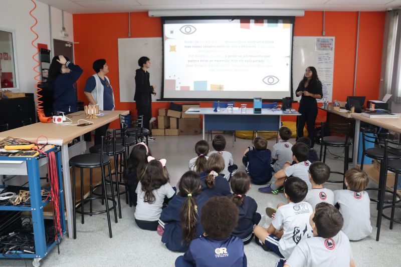 Os alunos do 3º ano do EF foram ao Espaço Maker, para realizar alguns experimentos sobre a luz e a visão, acompanhados pelas Professoras Gina, Leticia, Paula e Tatiana.