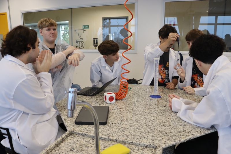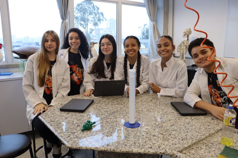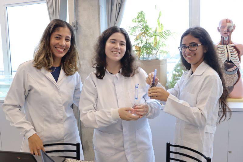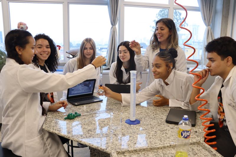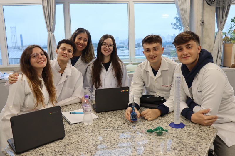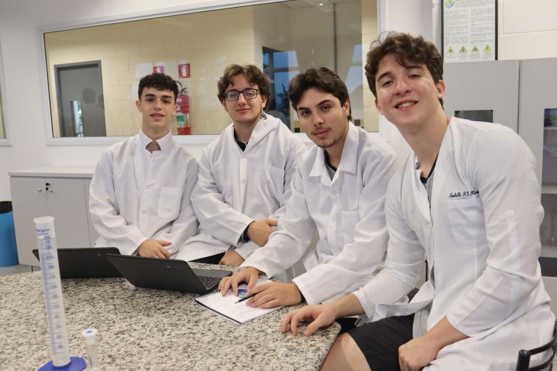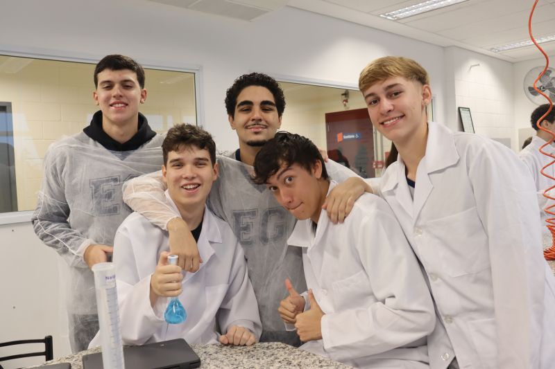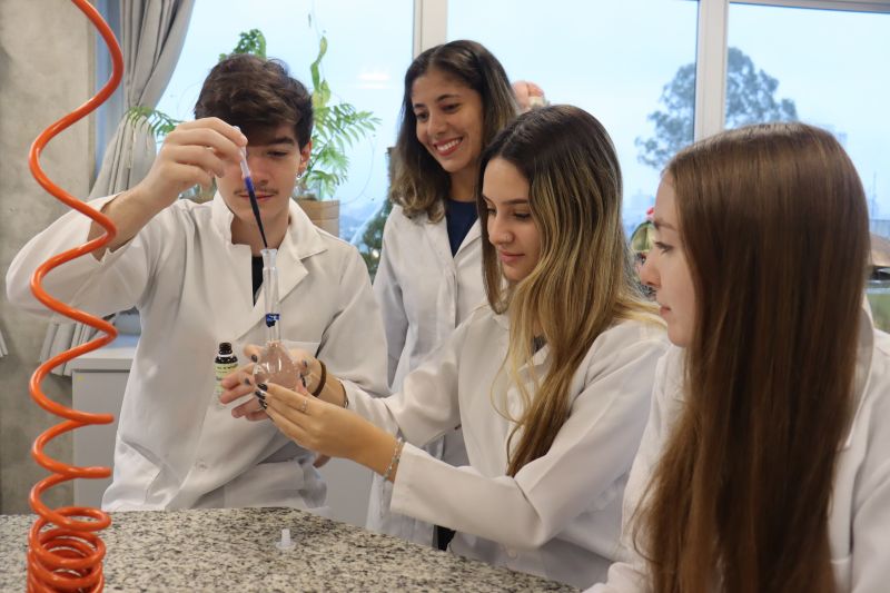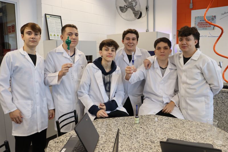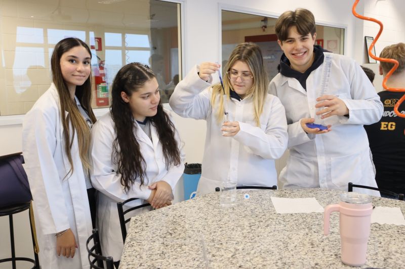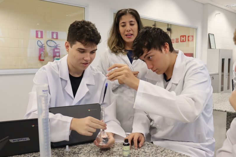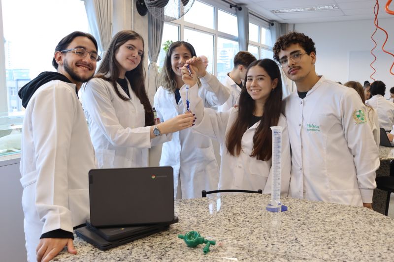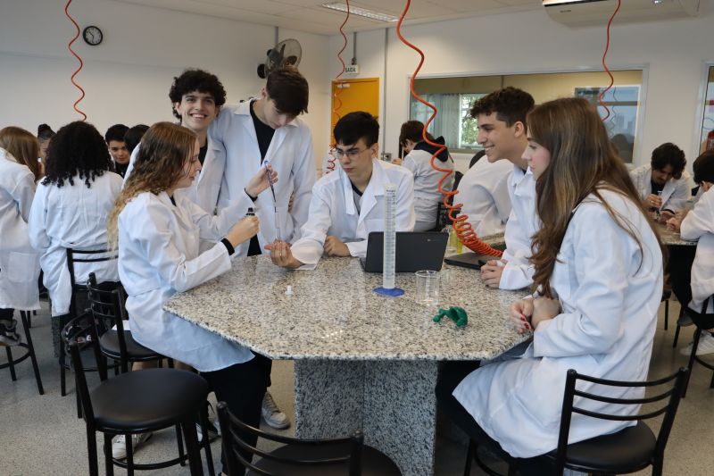 Os alunos da 3ª série do EM, em Investigação e Análises QuÃmicas, participaram de uma atividade no laboratório, sob orientação da Professora Priscilla.