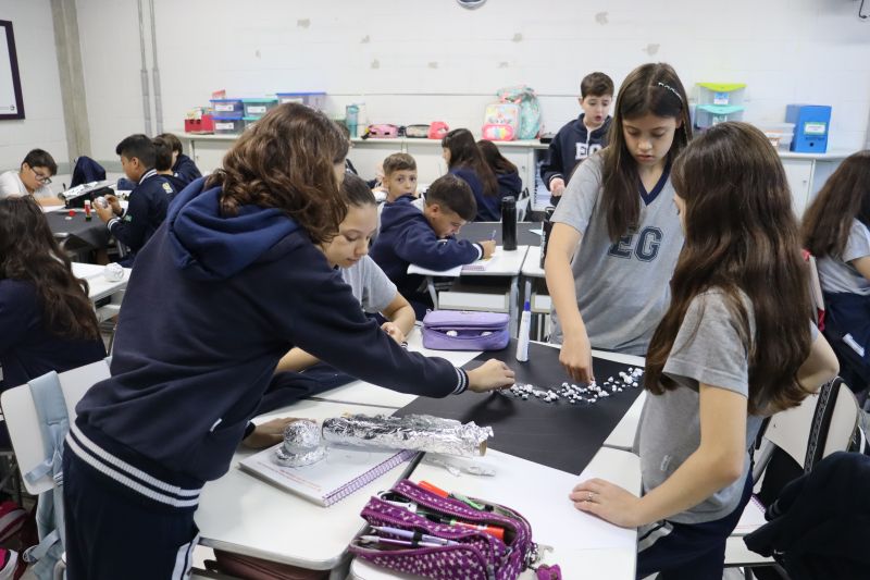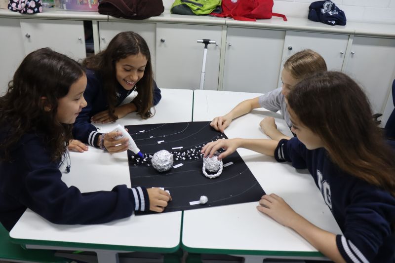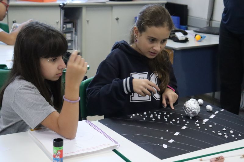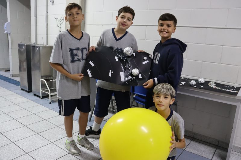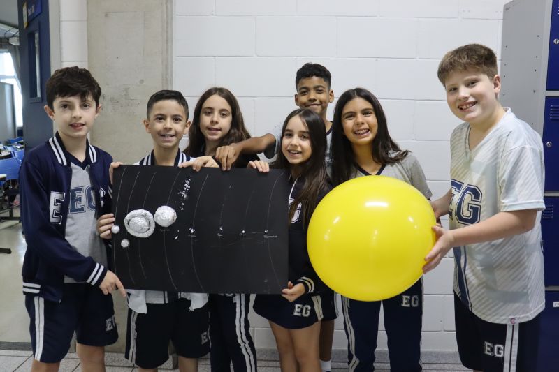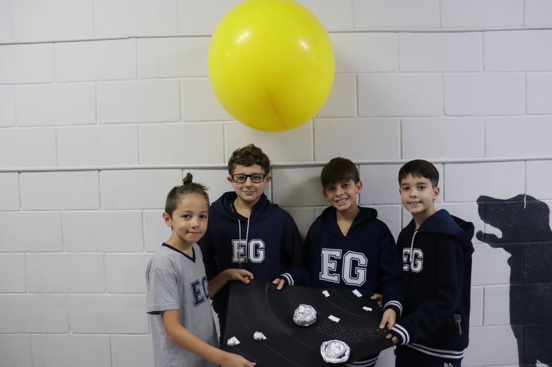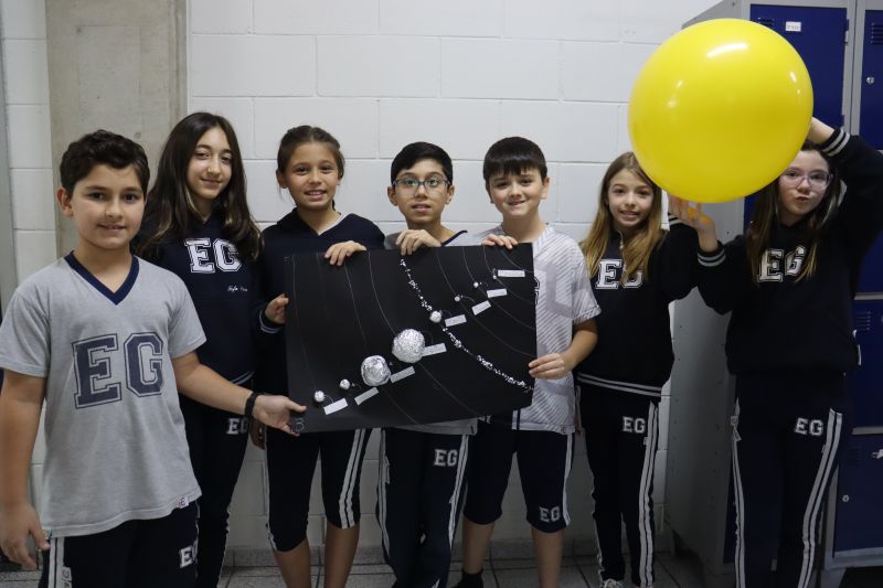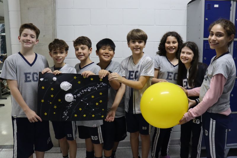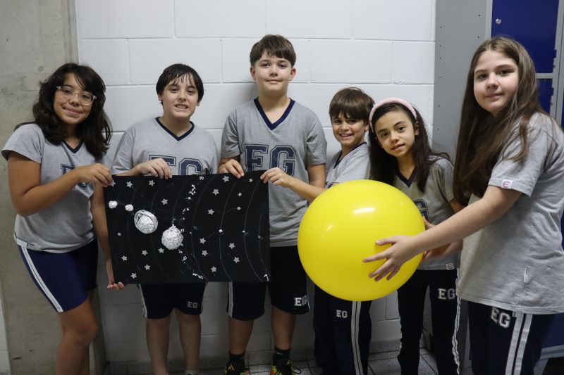 Os estudantes do 5º ano do EF, sob orientação das Professoras Tânia e Lilian, participaram de uma atividade prática e divertida com o objetivo de aprofundar seus conhecimentos sobre o Sistema Solar. Â