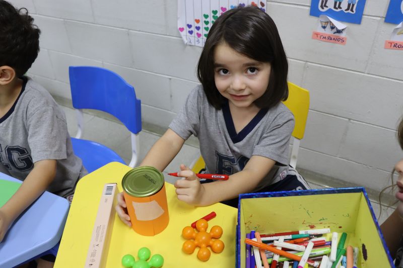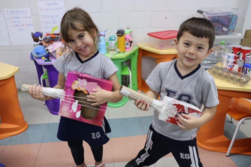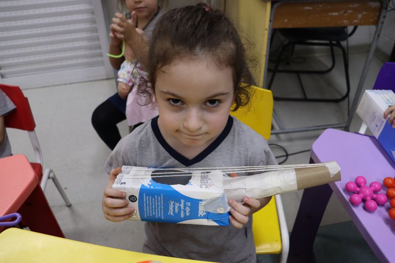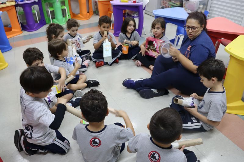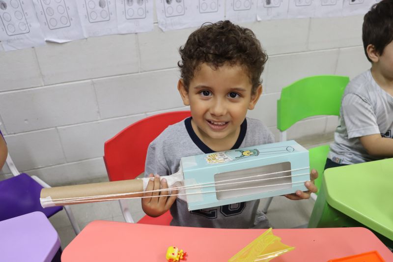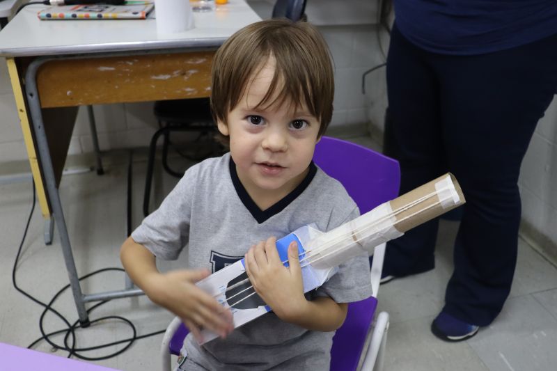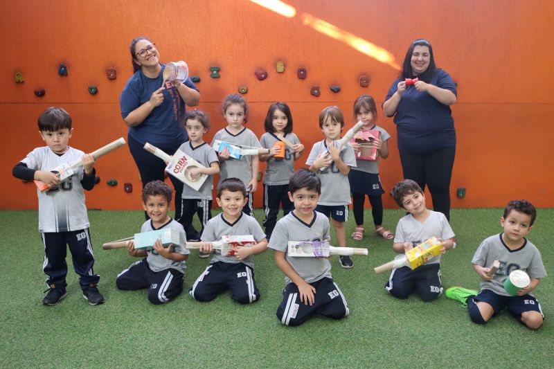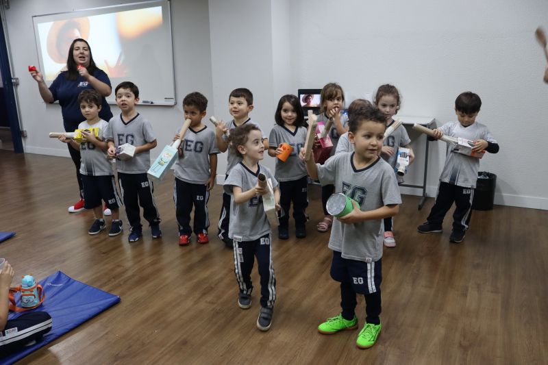 Os alunos do Nível I, orientados pela Professora Luciana, confeccionaram instrumentos musicais com materiais recicláveis – como guitarras, saxofones, flautas etc. – e saíram pelo Colégio se apresentando, com muita alegria.