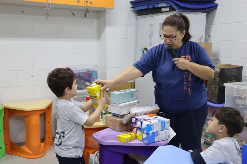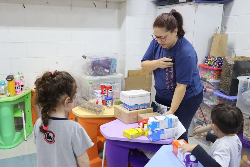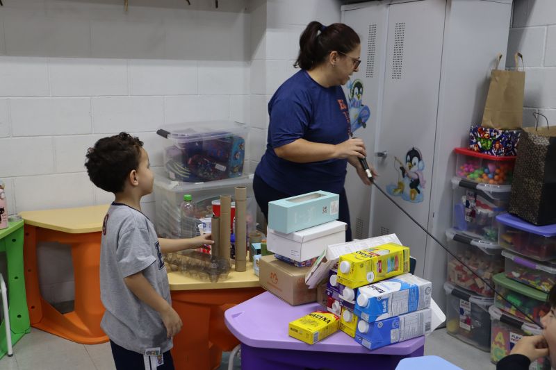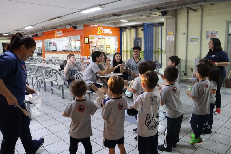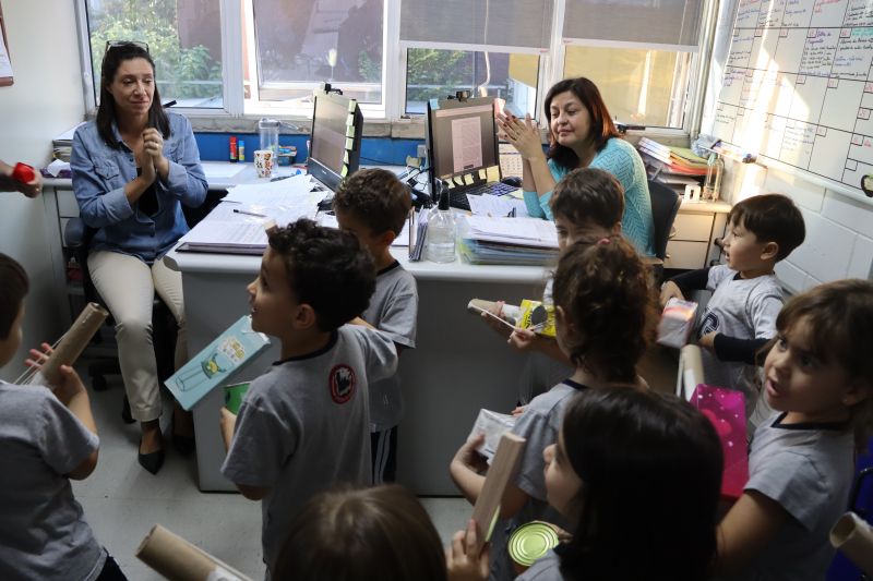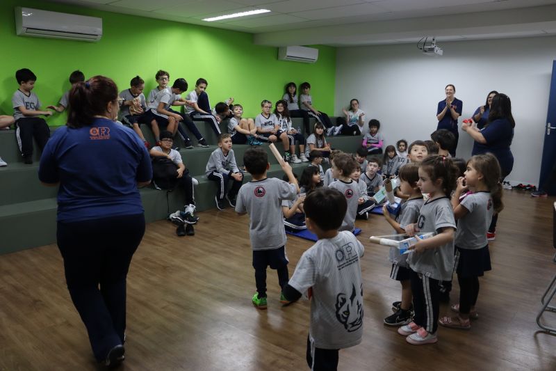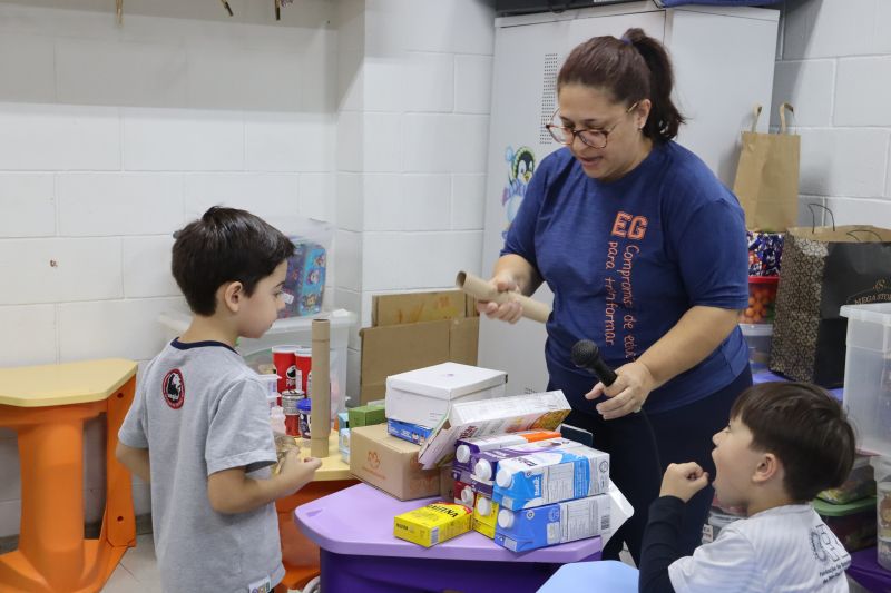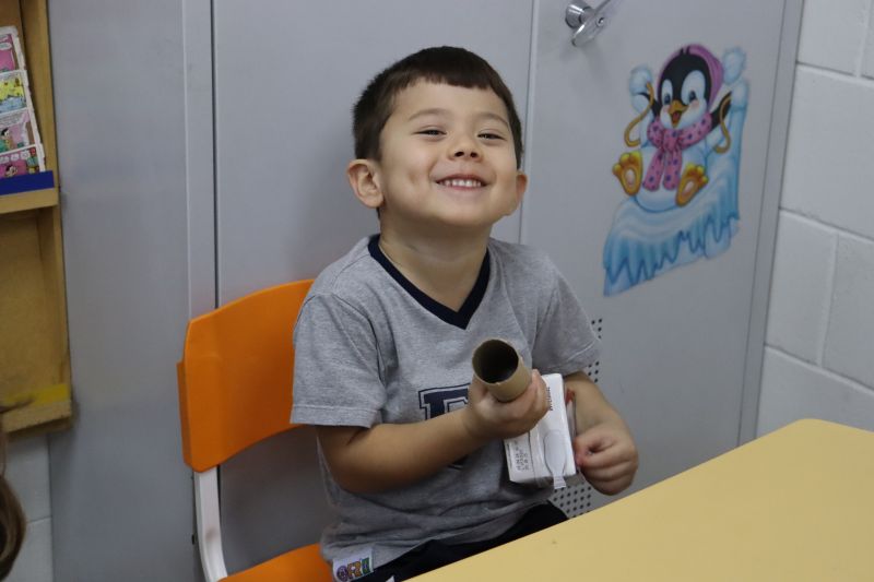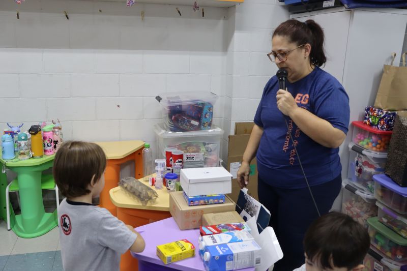 Os alunos do Nível I, orientados pela Professora Luciana, confeccionaram instrumentos musicais com materiais recicláveis – como guitarras, saxofones, flautas etc. – e saíram pelo Colégio se apresentando, com muita alegria.