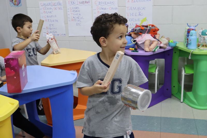 A atividade teve como objetivo reconhecer as qualidades do som (intensidade, duração, altura e timbre), explorar ritmos e movimentos, além de incentivar o faz de conta e a criatividade. Foi um momento de muita diversão, aprendizado e expressão musical!
