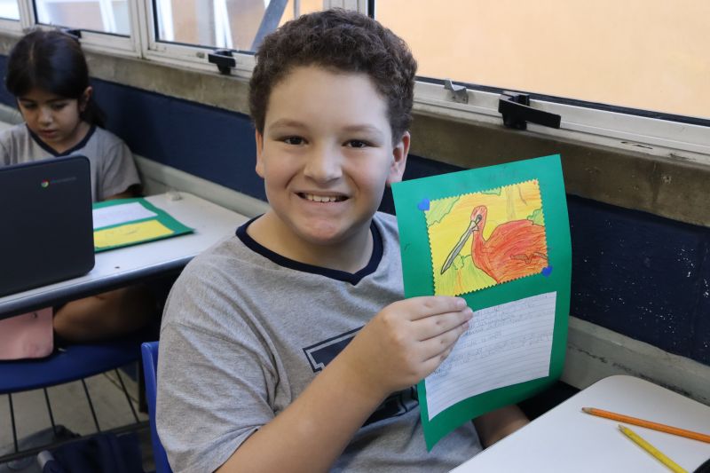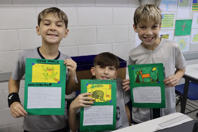 Cada estudante ficou responsável pela pesquisa sobre uma espécie, selecionando informações relevantes e registrando tudo na forma de verbetes enciclopédicos, além de desenhar o animal escolhido.