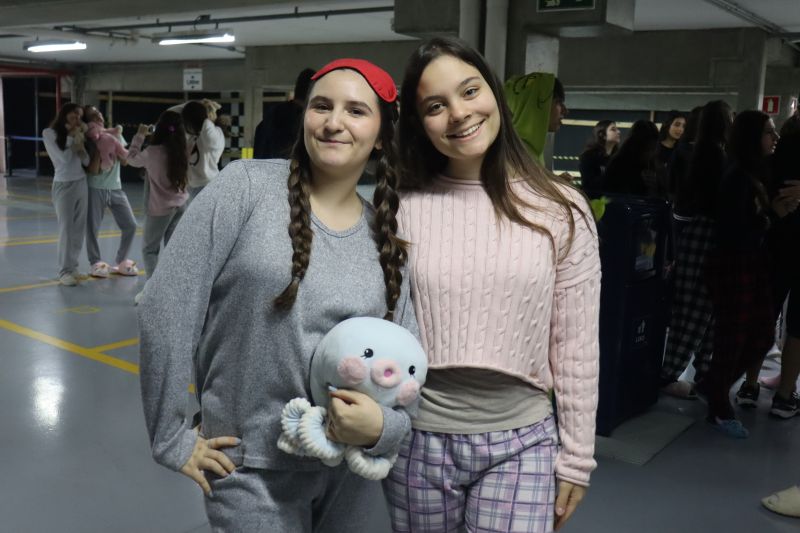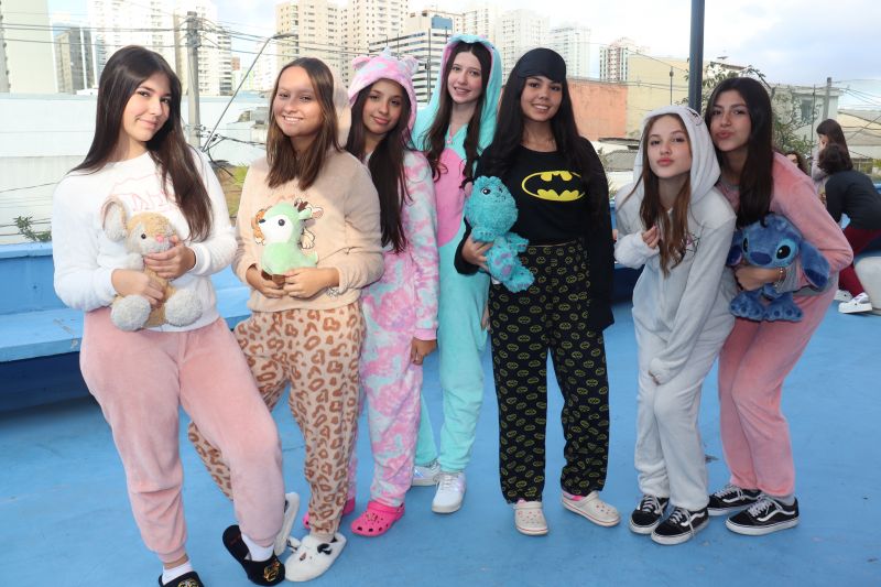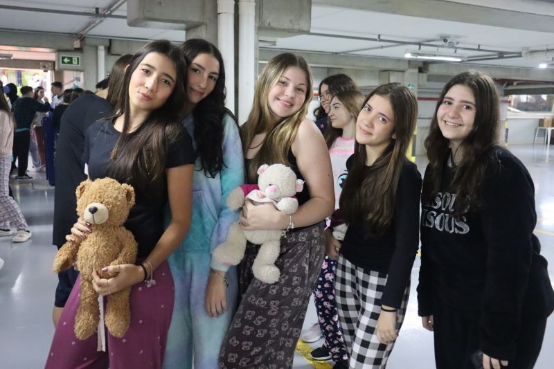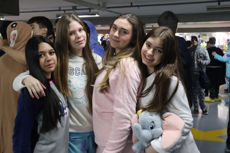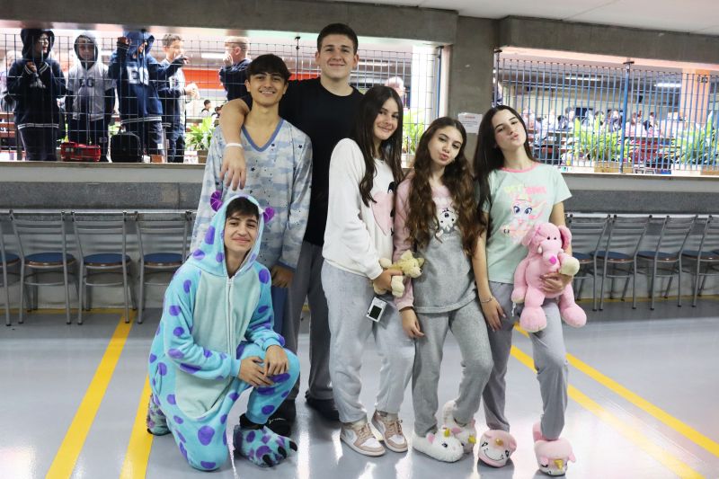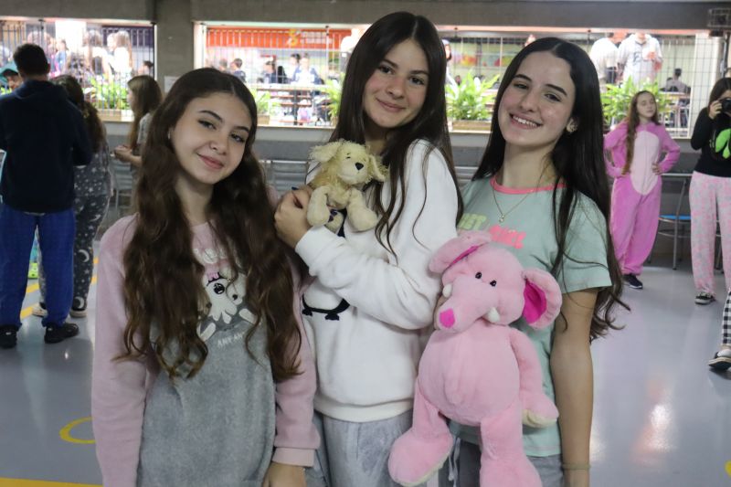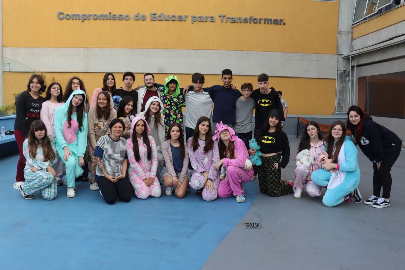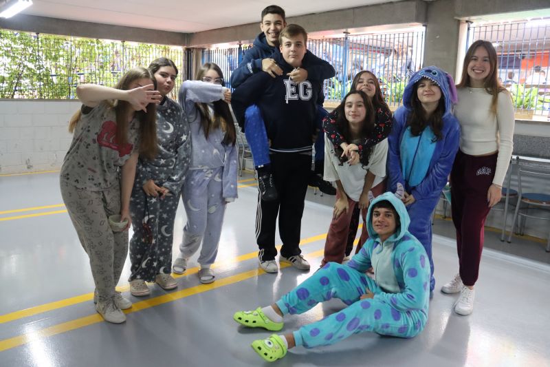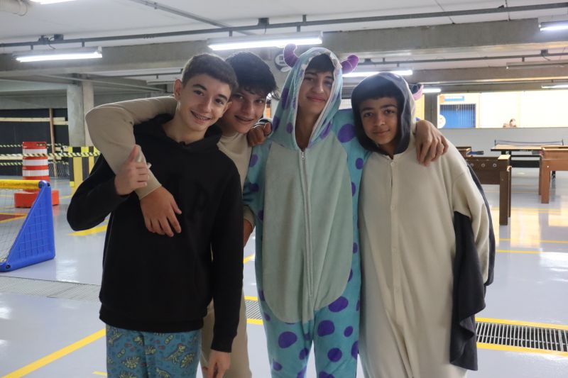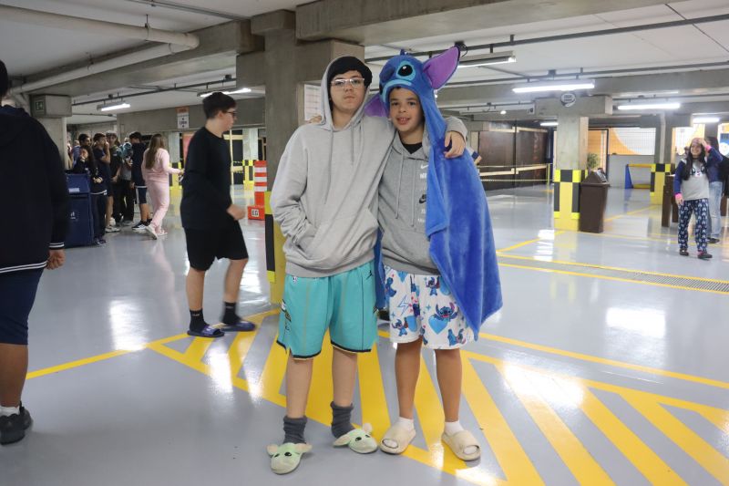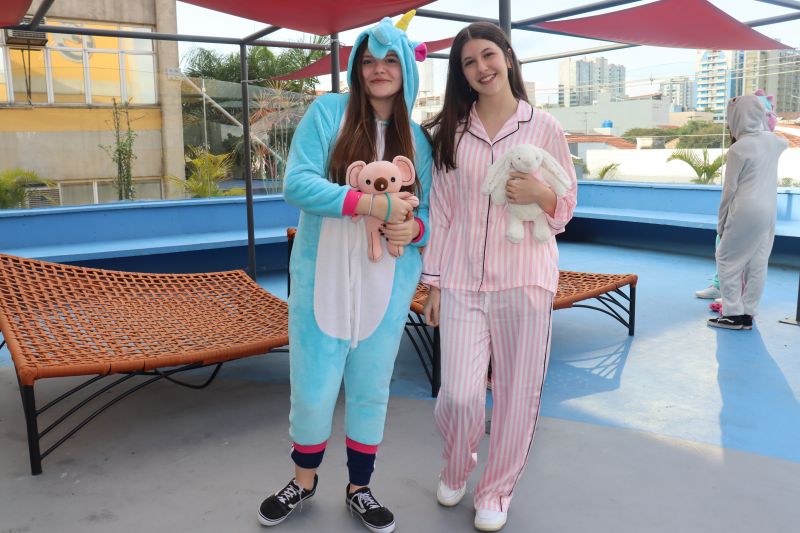 Vestidos com seus pijamas favoritos, os estudantes curtiram o horário do intervalo de uma maneira diferente, aproveitando cada momento de descontração para brincadeiras.