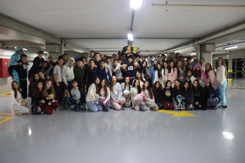Dando continuidade ao Projeto Pedágio, os alunos do 9º ano do EF realizaram mais um trote, desta vez, com o tema Pijama.
