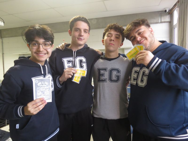 Durante o bingo, os "sorteios" não foram números, mas sim perguntas e conceitos-chave relacionados ao Modernismo. Os alunos preencheram suas cartelas com termos como autores, obras, características de cada fase e movimentos artísticos que inspiraram os modernistas. A cada item sorteado e corretamente identificado, os participantes marcavam suas cartelas, reforçando o aprendizado de maneira colaborativa e divertida.