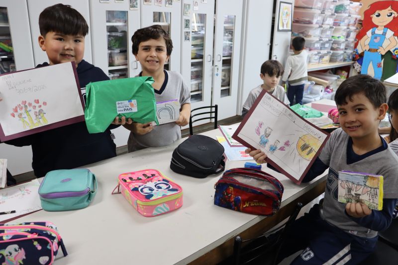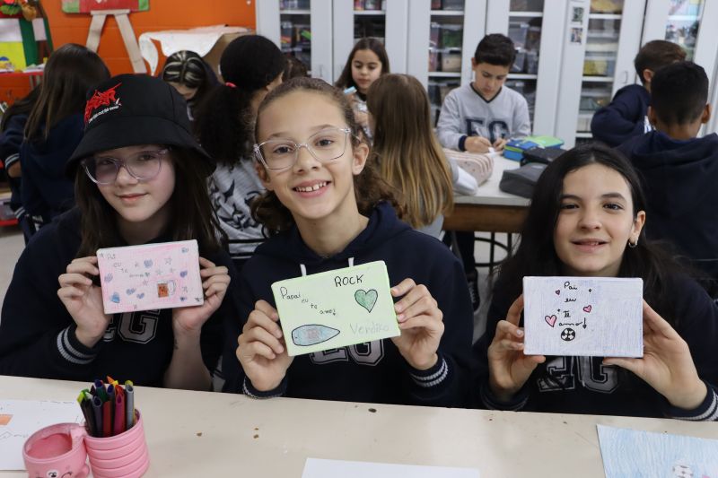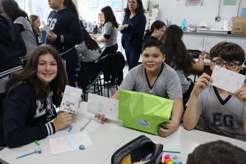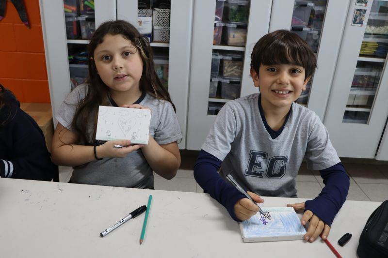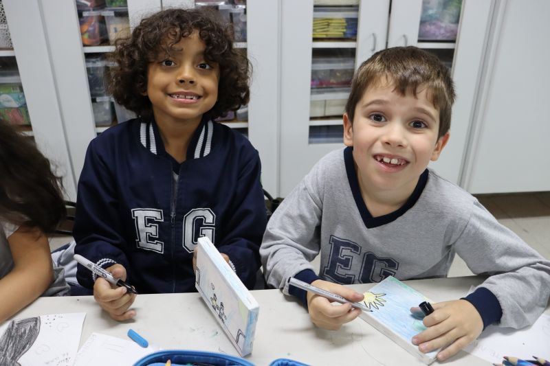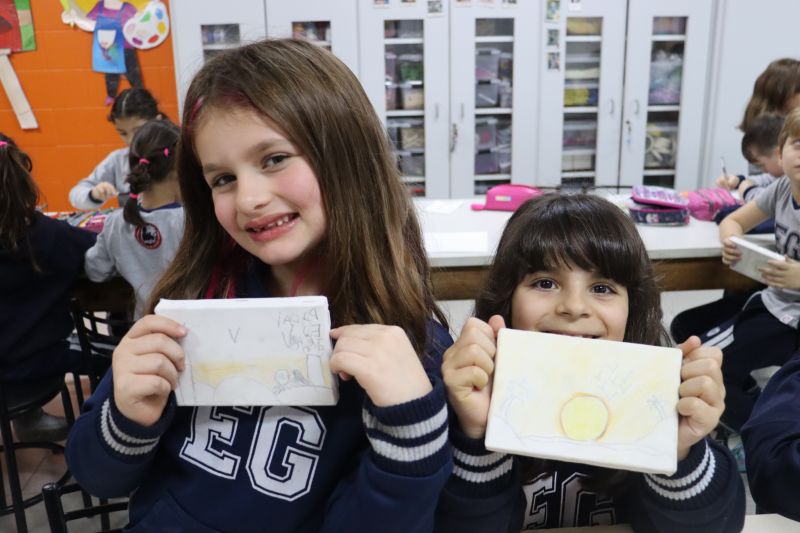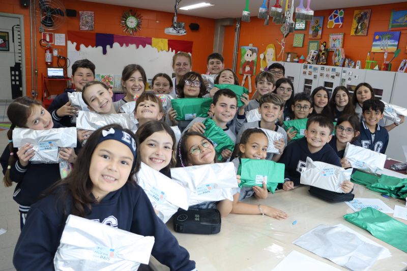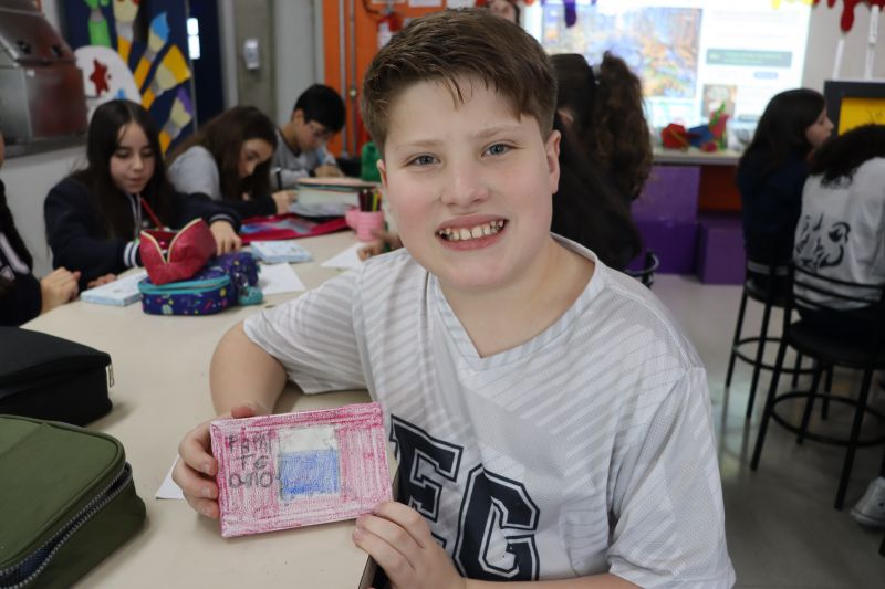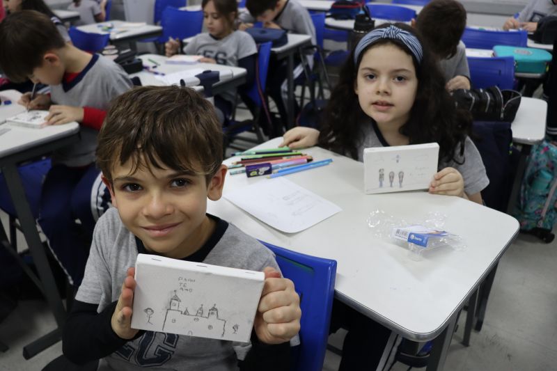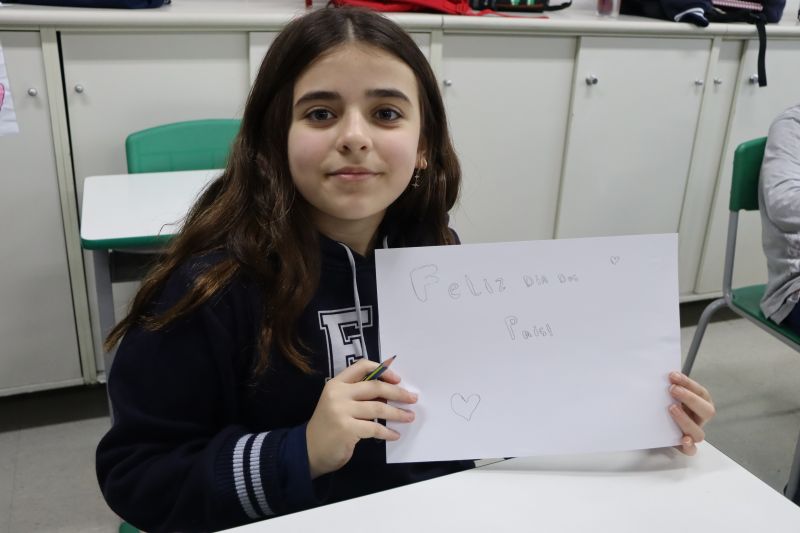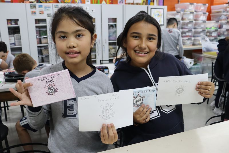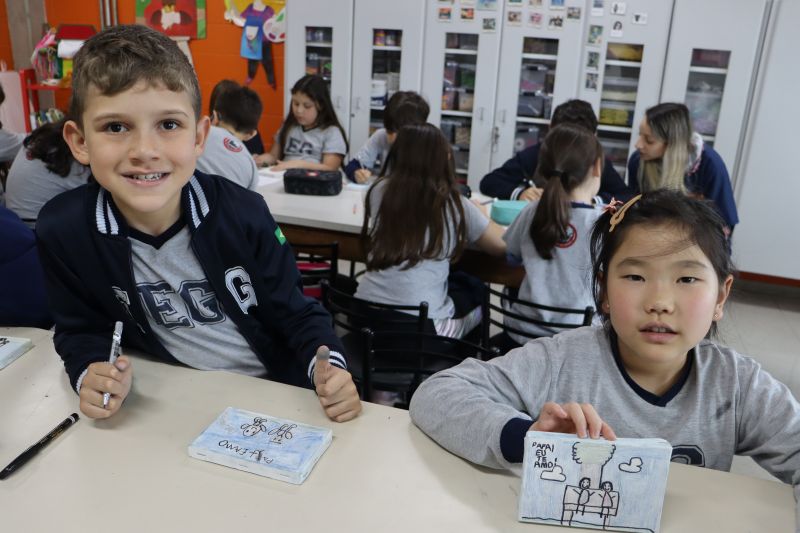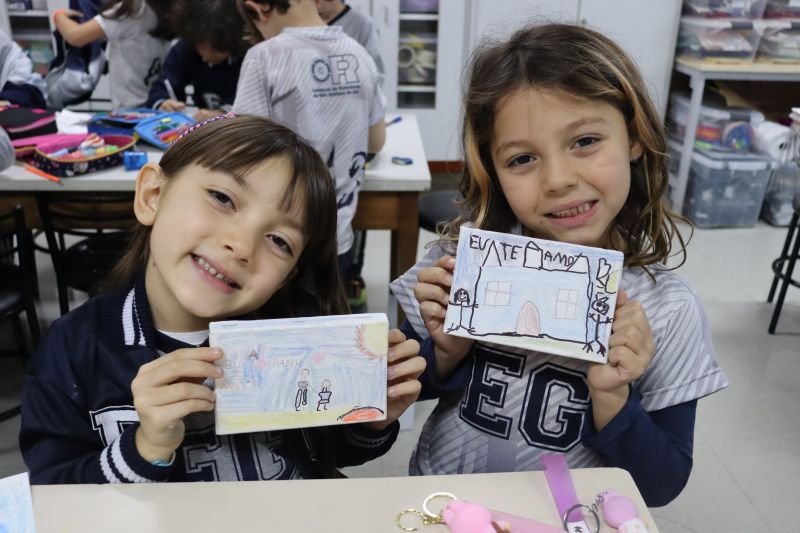 Durante as aulas de Arte, sob a orientação da Professora Vick, os estudantes pintaram telas, transmitindo o carinho e a admiração que sentem. Junto com a tela, cada estudante levou um nécessaire personalizado para seu pai.