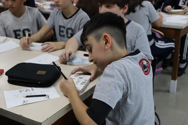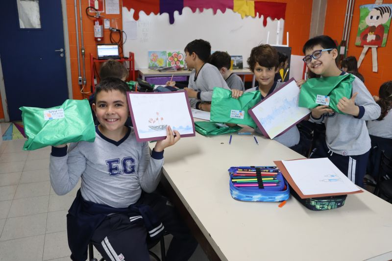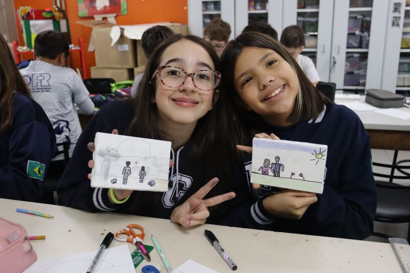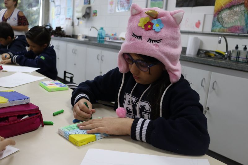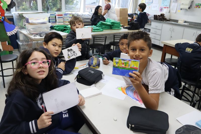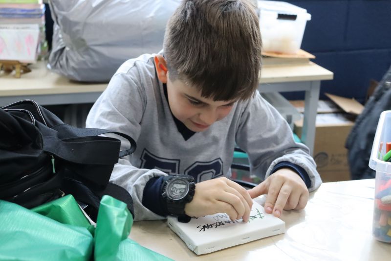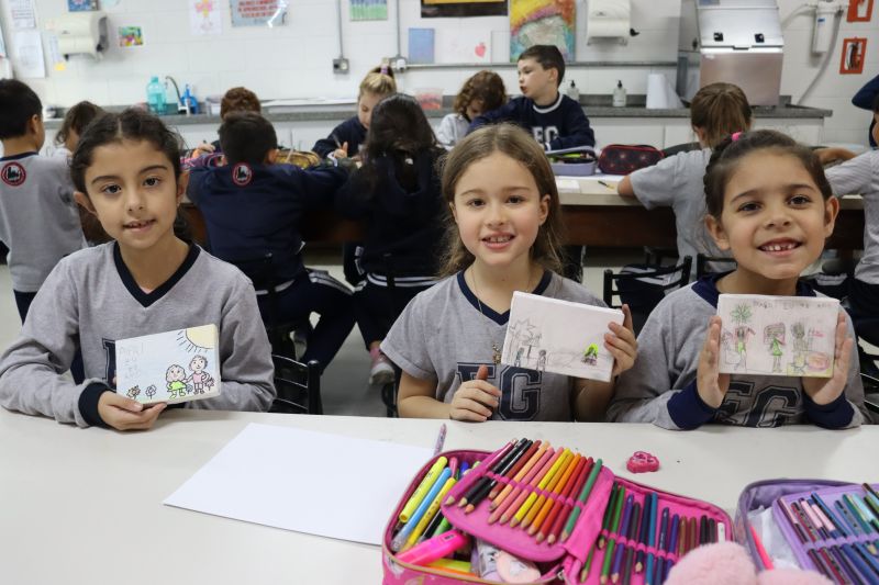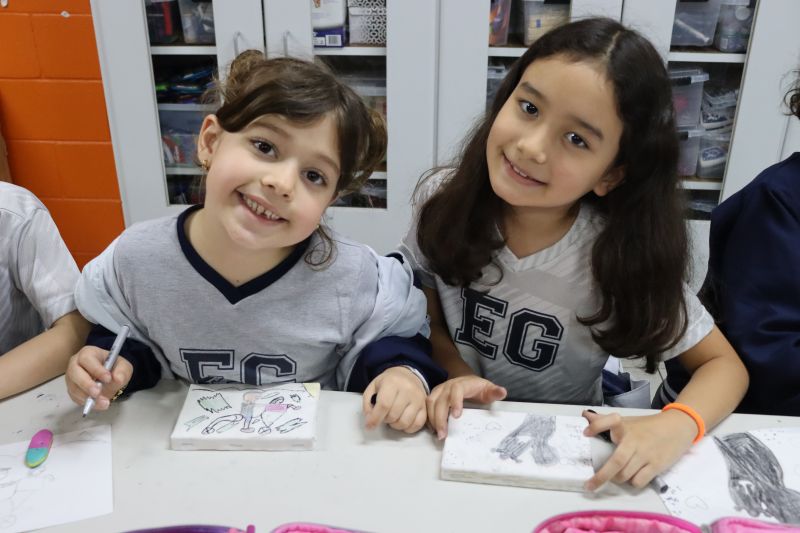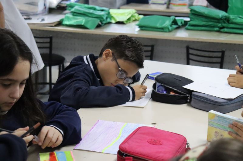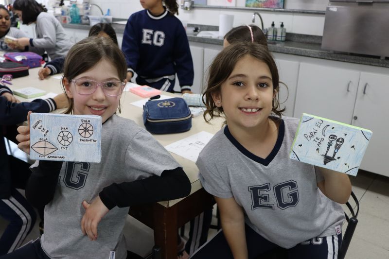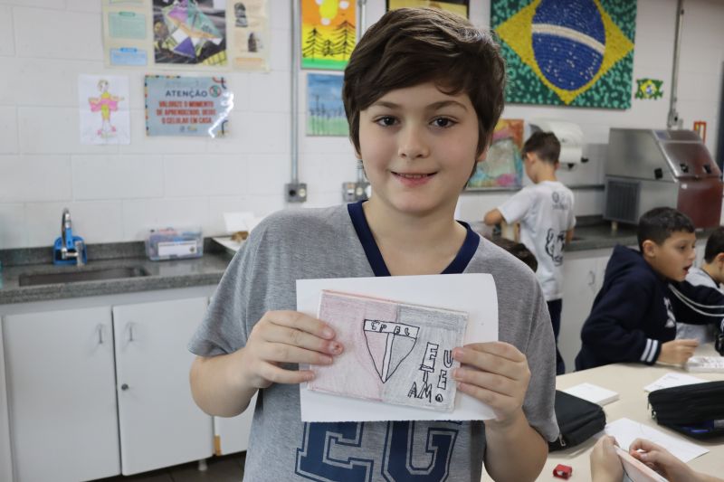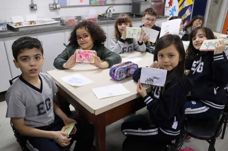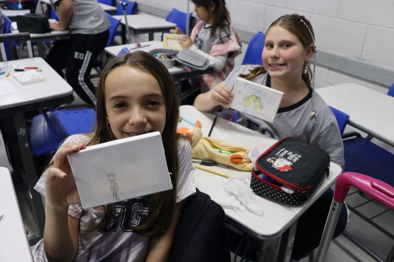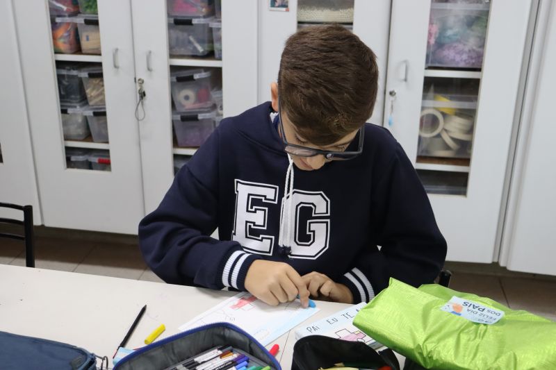 Durante as aulas de Arte, sob a orientação da Professora Vick, os estudantes pintaram telas, transmitindo o carinho e a admiração que sentem. Junto com a tela, cada estudante levou um nécessaire personalizado para seu pai.