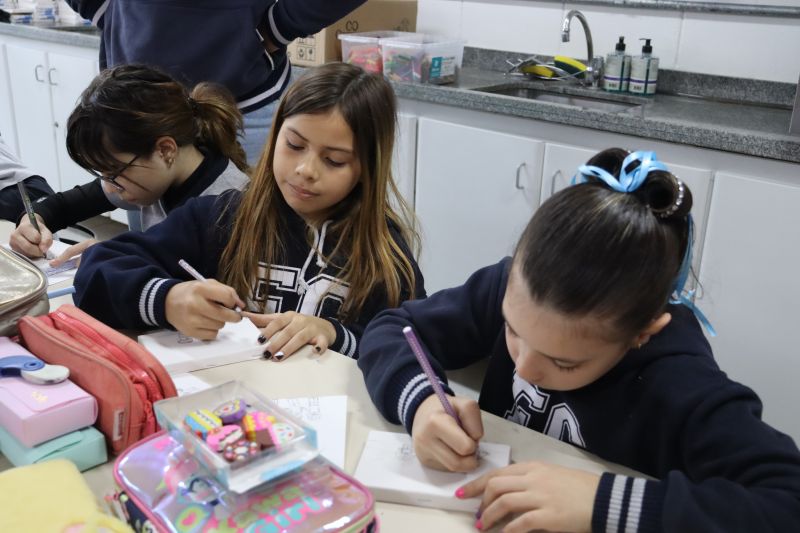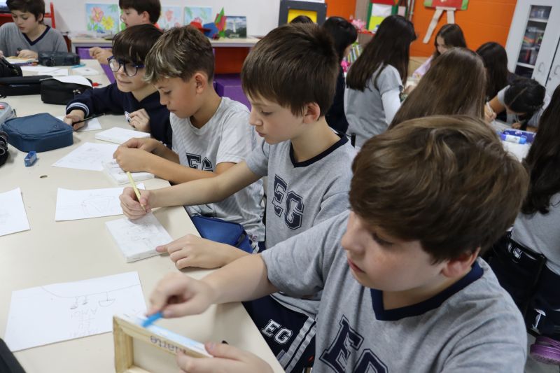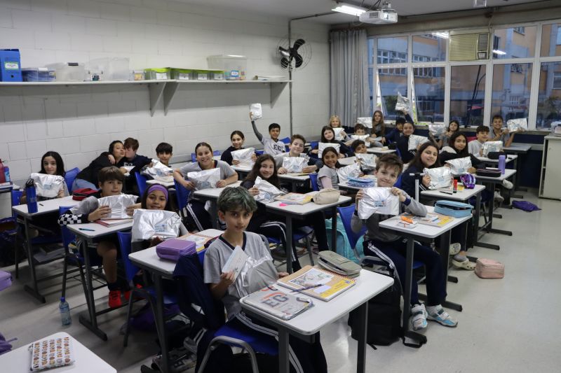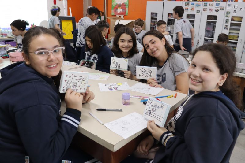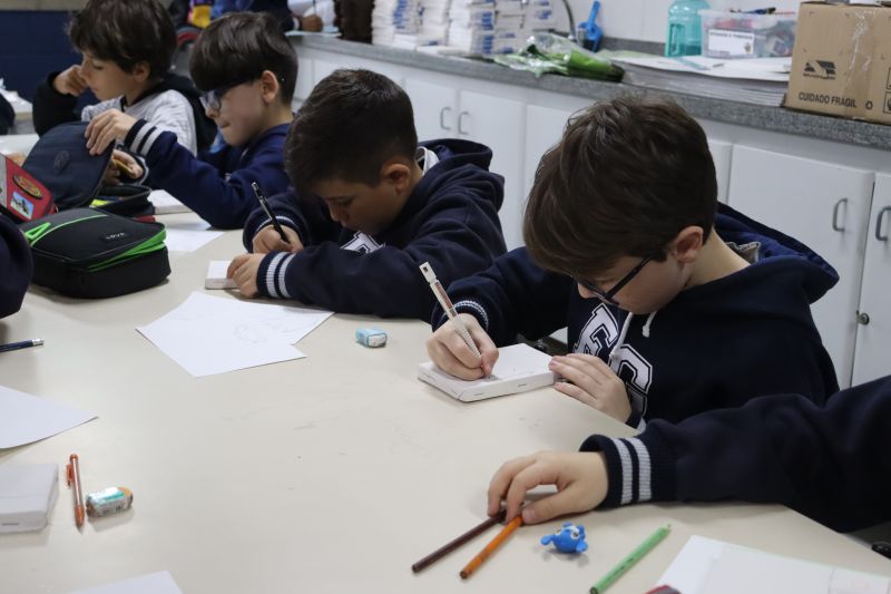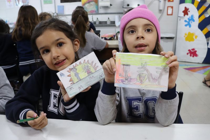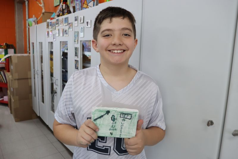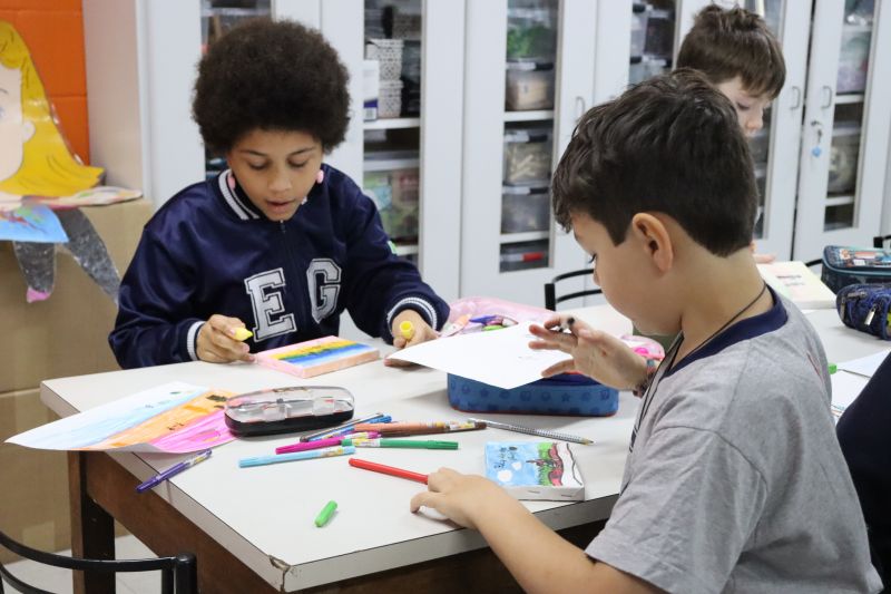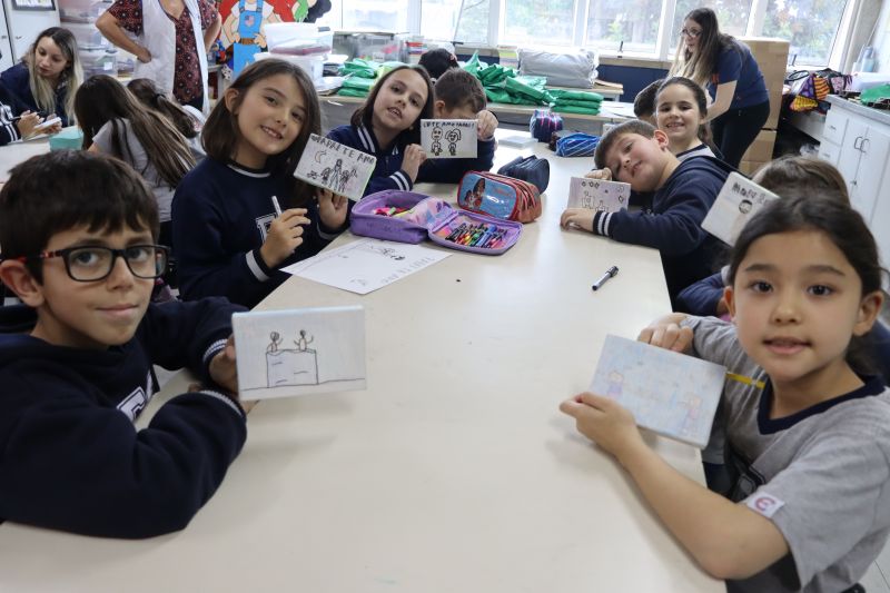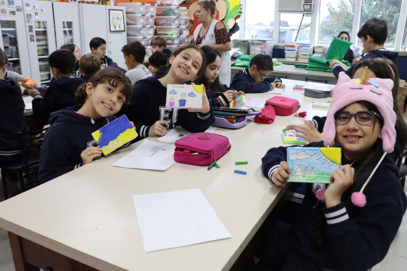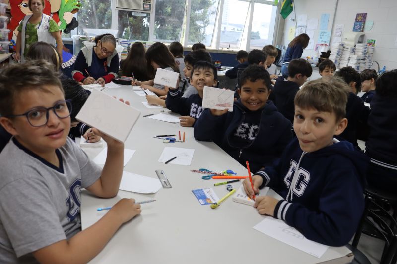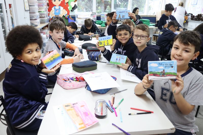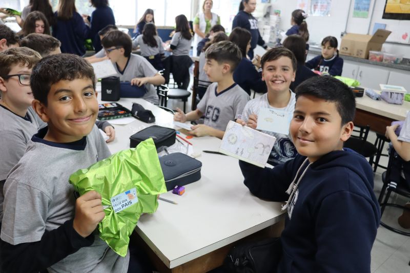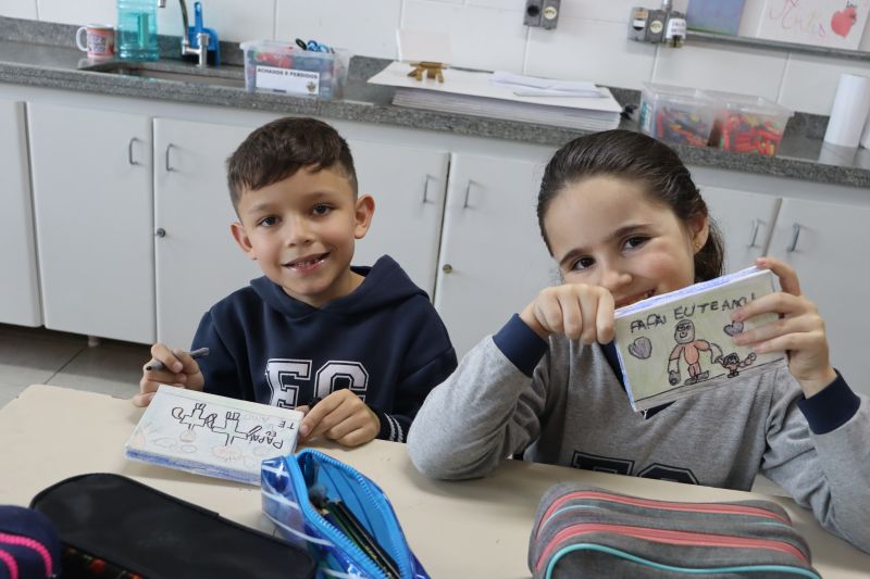 Durante as aulas de Arte, sob a orientação da Professora Vick, os estudantes pintaram telas, transmitindo o carinho e a admiração que sentem. Junto com a tela, cada estudante levou um nécessaire personalizado para seu pai.