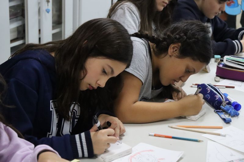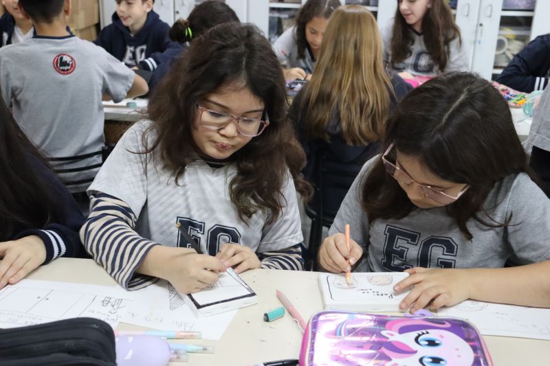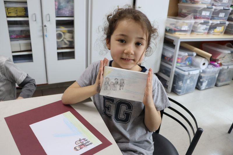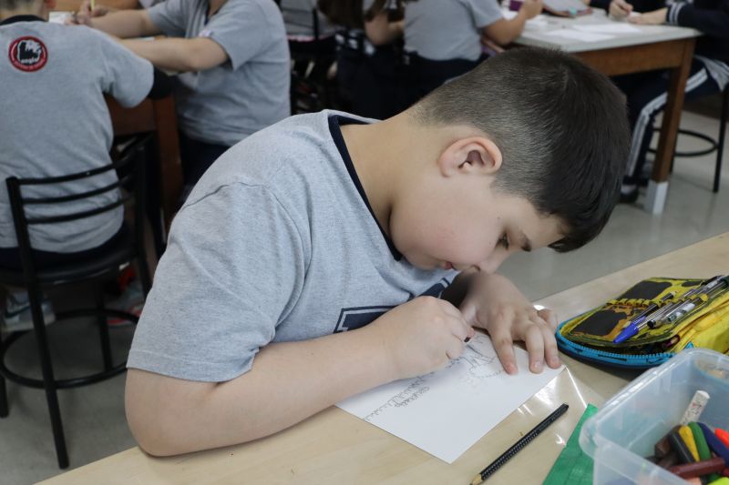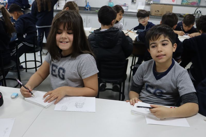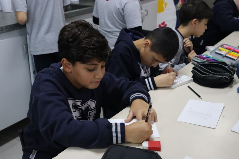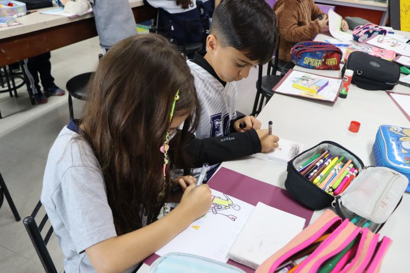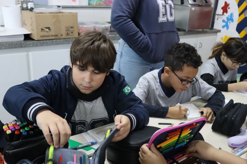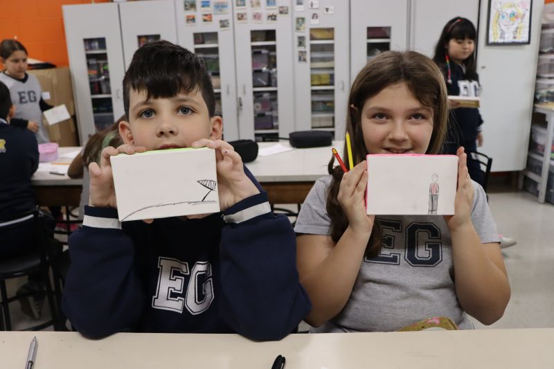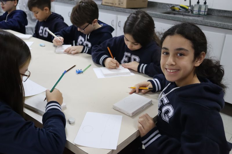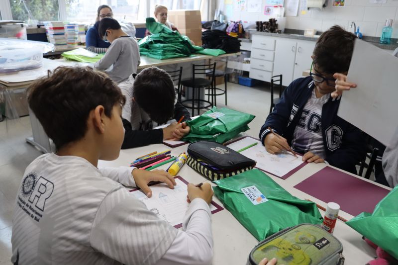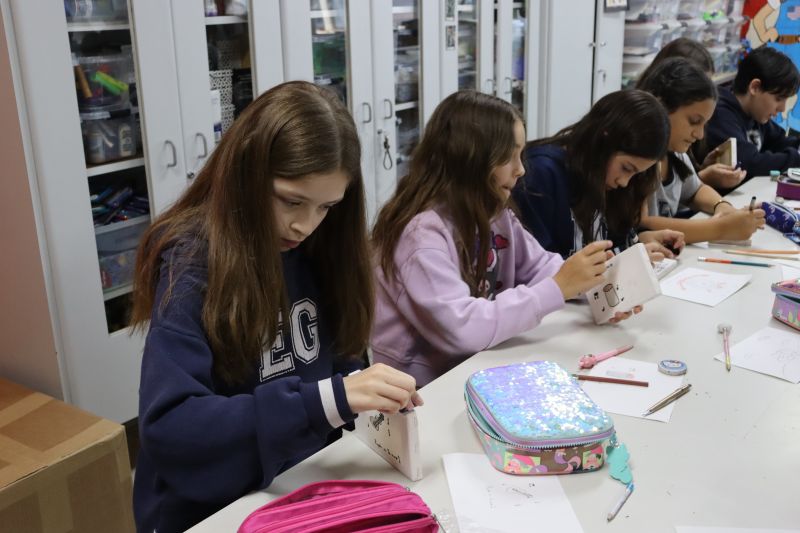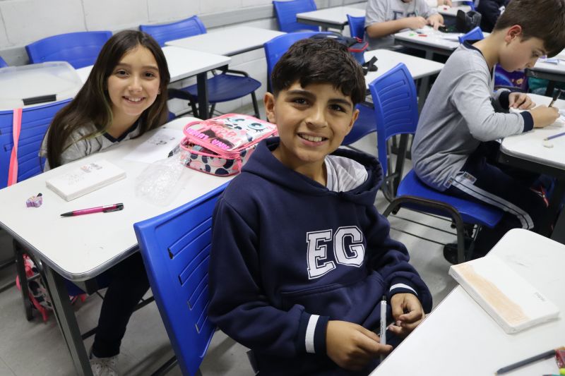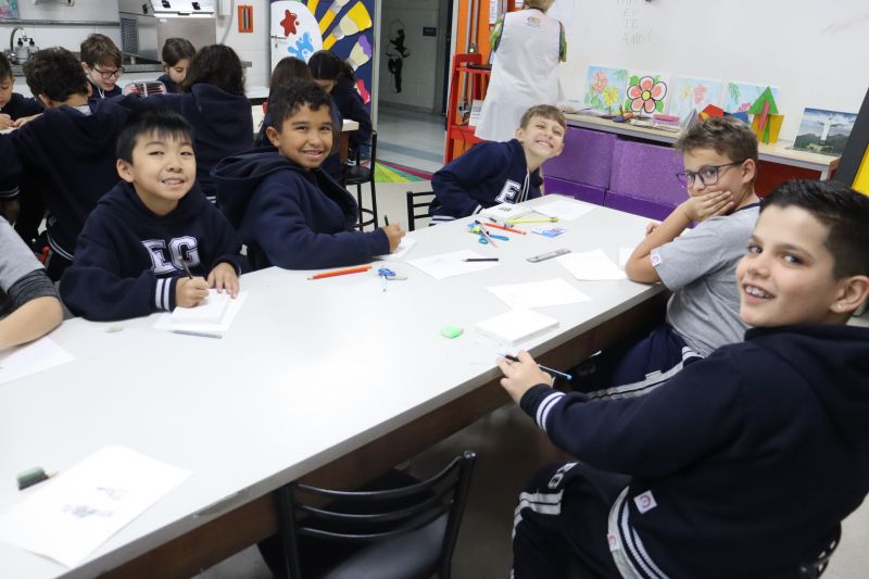 Durante as aulas de Arte, sob a orientação da Professora Vick, os estudantes pintaram telas, transmitindo o carinho e a admiração que sentem. Junto com a tela, cada estudante levou um nécessaire personalizado para seu pai.