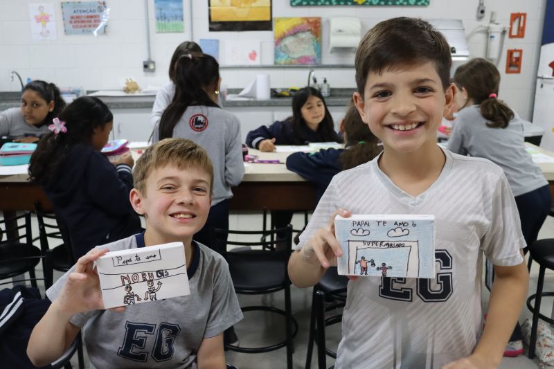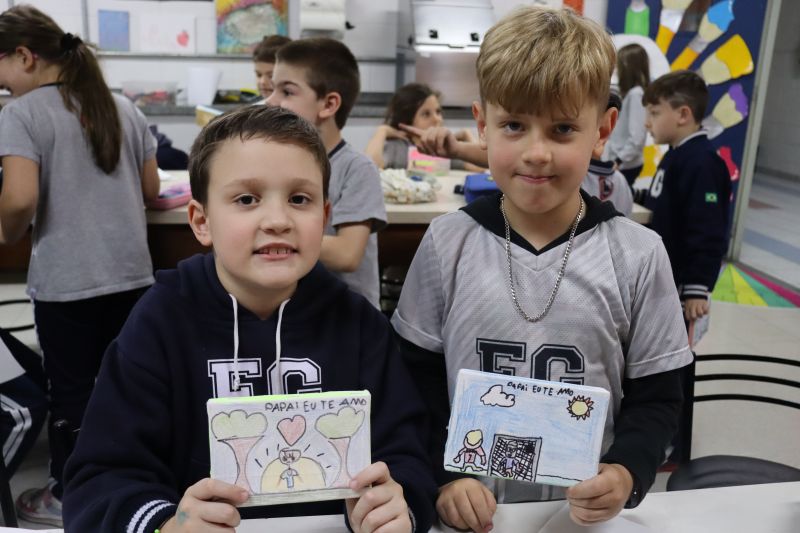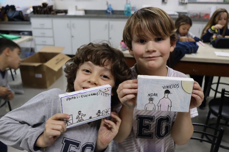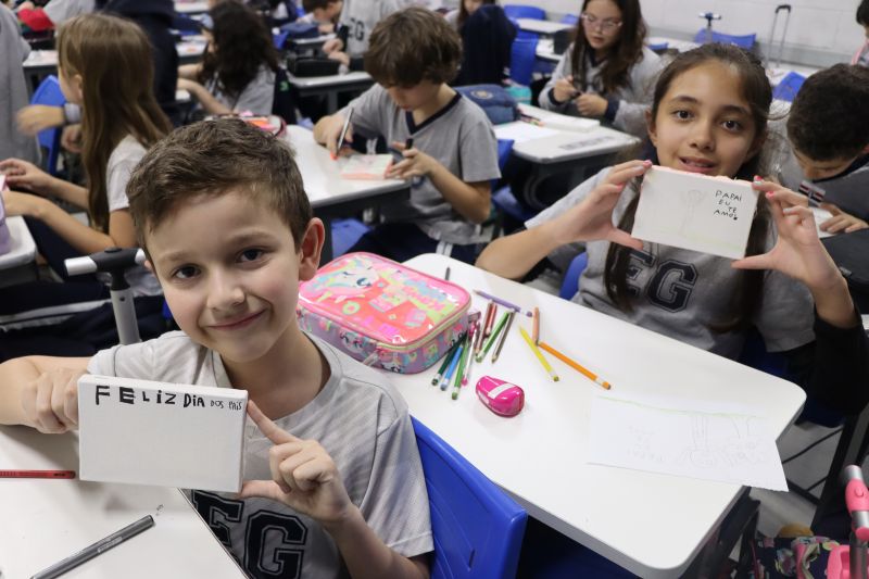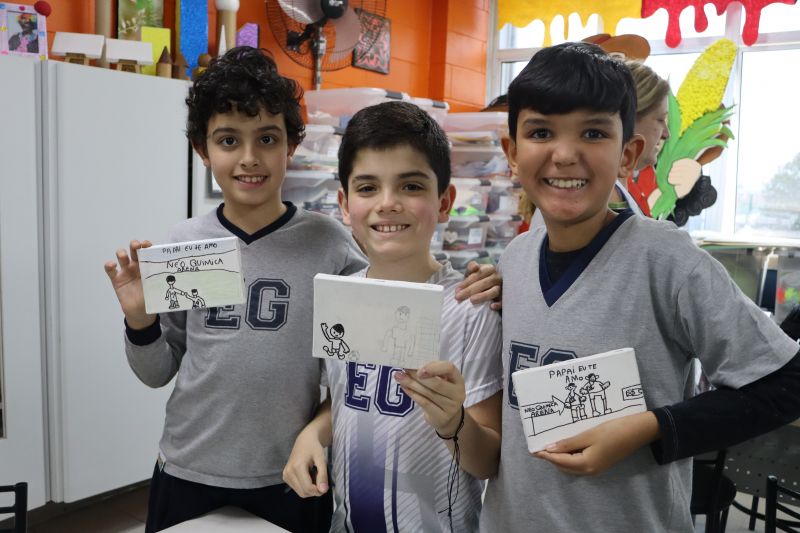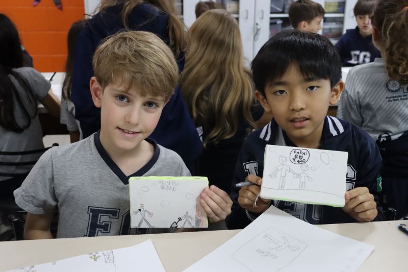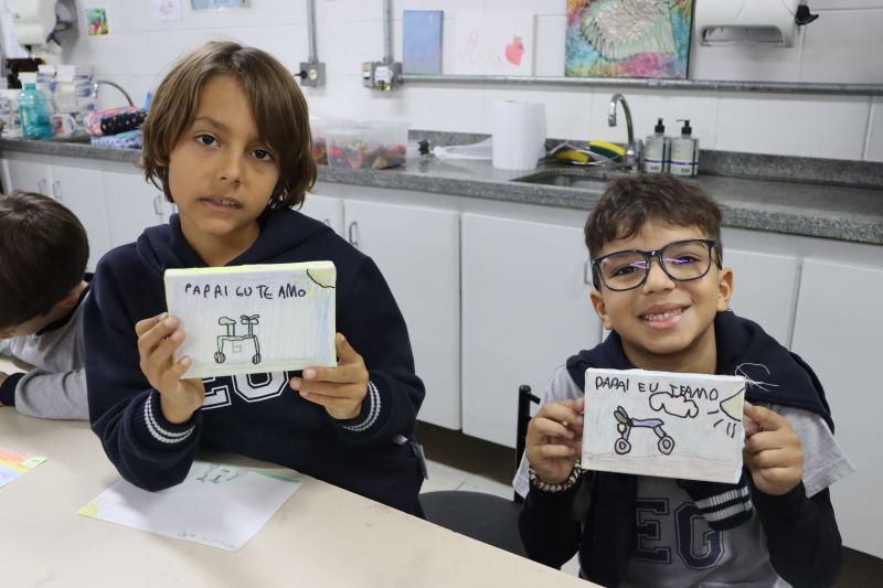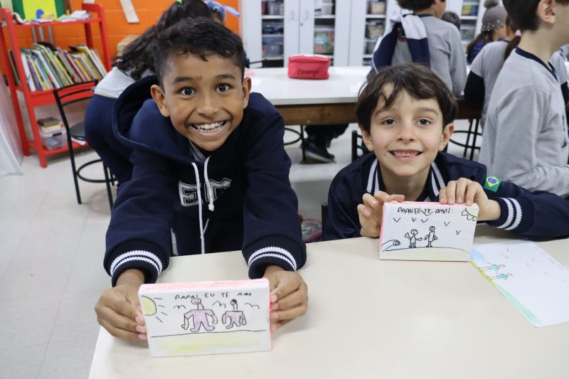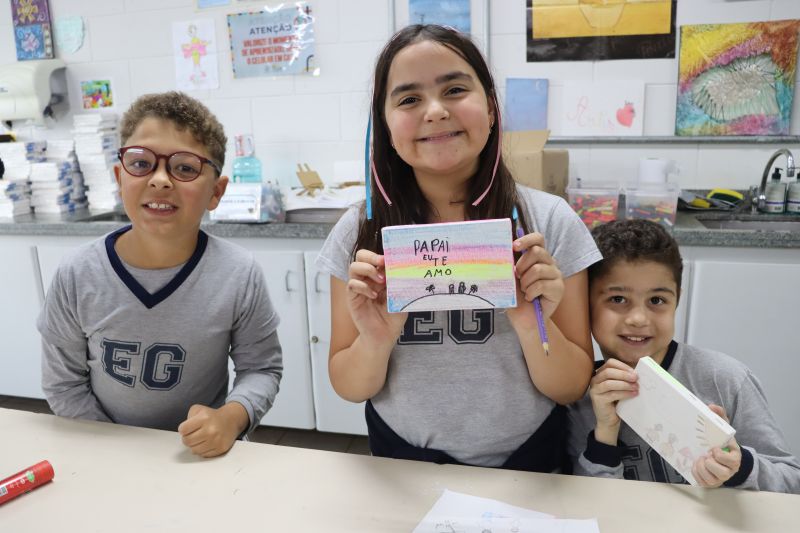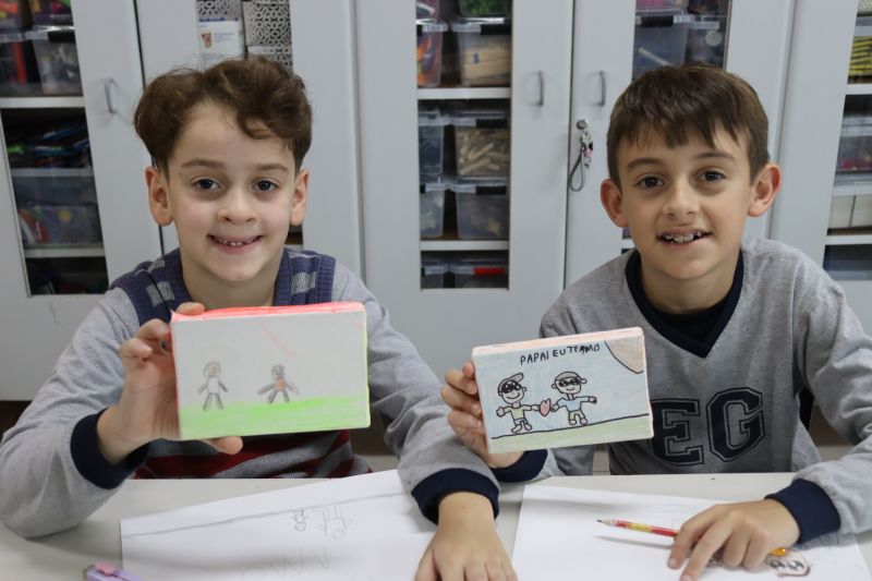 Para celebrar e homenagear uma das pessoas mais importantes em suas vidas, os alunos do 1º ao 5º ano do EF prepararam lembranças especiais em comemoração ao Dia dos Pais.