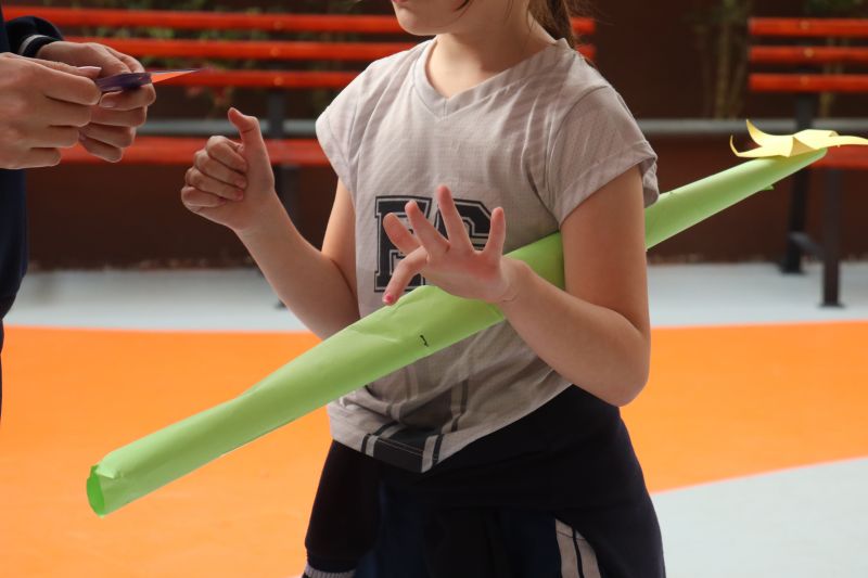 Orientados pela Professora Aline, os estudantes do 4º ano EF, do período integral, realizaram uma atividade chamada estafeta da tabuada.