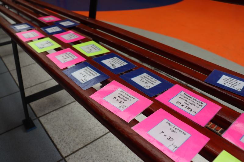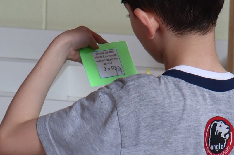 Com o intuito de auxiliar os alunos no estudo das tabuadas, a Professora propôs desafios em que eles deveriam realizar as operações apresentadas.