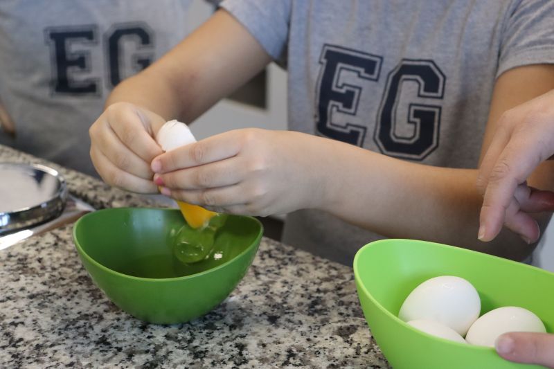 Enquanto a Cássia conduzia o preparo, os alunos aprenderam o passo a passo da receita e o nome de cada ingrediente, em inglês.