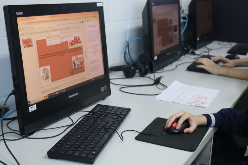 A proposta levou os estudantes a refletirem sobre o uso consciente e responsável da internet, com ênfase na prática de atitudes respeitosas e no combate à disseminação de fake news.