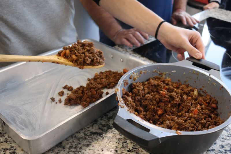 Os estudantes do Itinerário de Química, da 2ª série do EM – Investigação e Análises Químicas, participaram de mais uma atividade prática na cozinha experimental. Sob a orientação dos Professores Alex e Cássia, a turma preparou uma deliciosa receita de escondidinho de carne de soja.