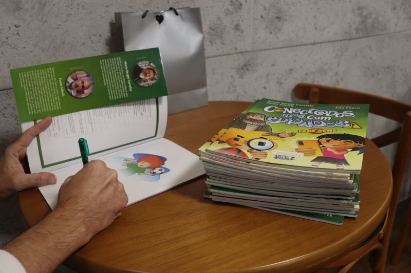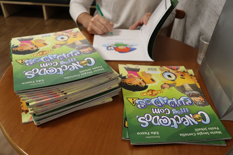 Os estudantes do 4º ano do Ensino Fundamental participaram de um momento muito especial: a entrevista com o autor Paulo Jebaili, um dos escritores do livro Conectados, mas com cuidados!.