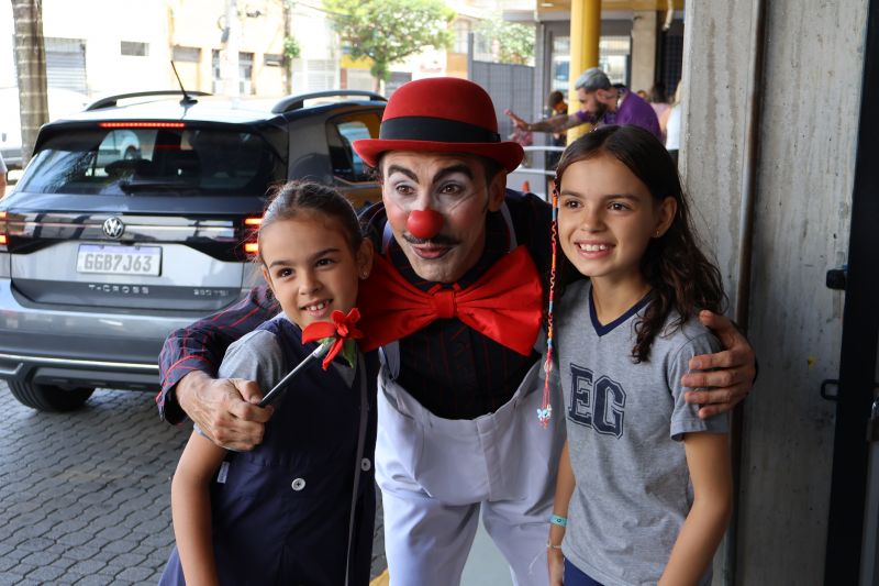 Na entrada, os estudantes foram recepcionados pelos animadores da Cia Fantasy: dois pernas-de-pau, um palhaço e uma banda de soldadinhos de chumbo.