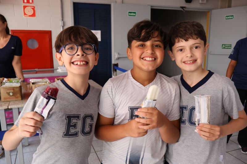 Nos intervalos, com o objetivo de tornar o dia mais especial, o Colégio ofereceu picolés para os estudantes.