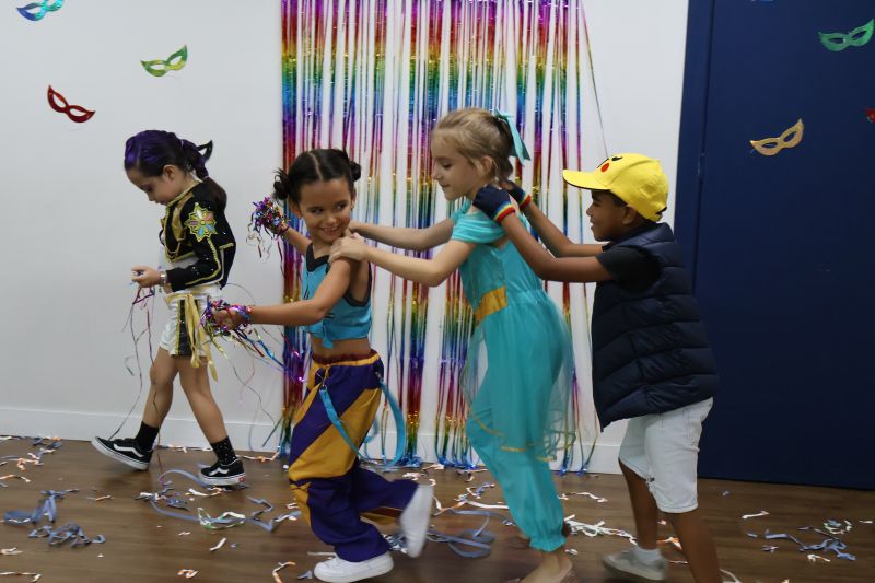 Para se divertirem ainda mais, os pequenos participaram de um baile, dançando músicas alegres e contagiantes e, durante o intervalo, os maiores puderam curtir muita música para despertar o espírito carnavalesco.