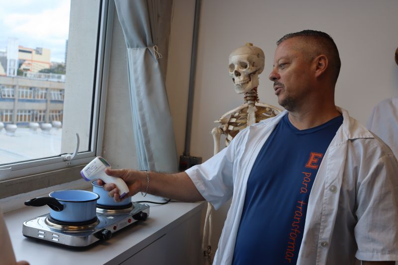 Os estudantes realizaram alguns experimentos sobre tonoscopia, ebulioscopia e crioscopia, com soluções no fogão de indução e, a partir desses experimentos, analisaram os efeitos coligativos nas soluções, de forma lúdica e interativa.
