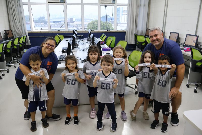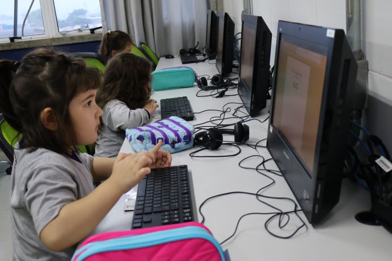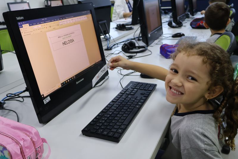 Os alunos do Nível I da Educação Infantil, acompanhados pela Professora Luciana, participaram de uma atividade no laboratório de informática, onde aprenderam a reconhecer as letras do alfabeto e a escrever o próprio nome.
