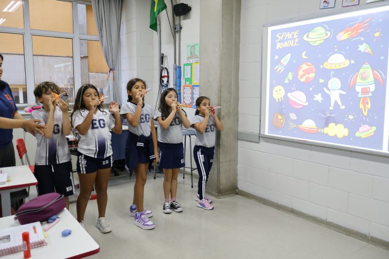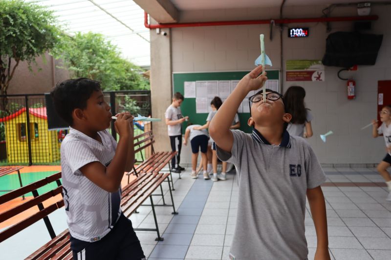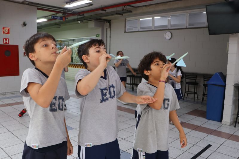 Dessa forma, os pequenos trocaram experiências e verificaram suas hipóteses para o lançamento dos foguetes, de modo divertido e interativo.