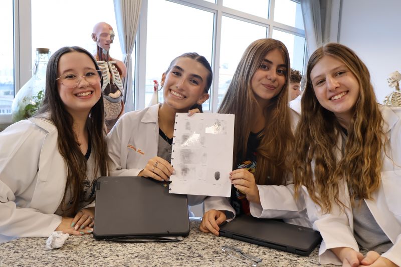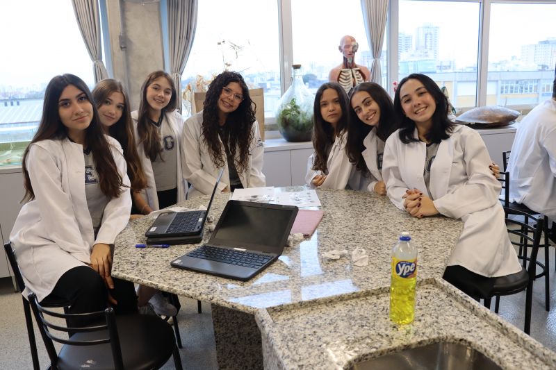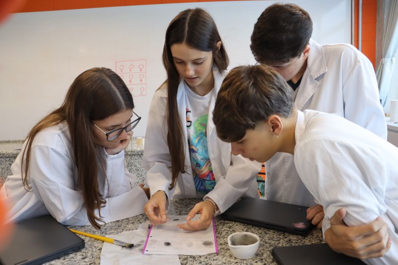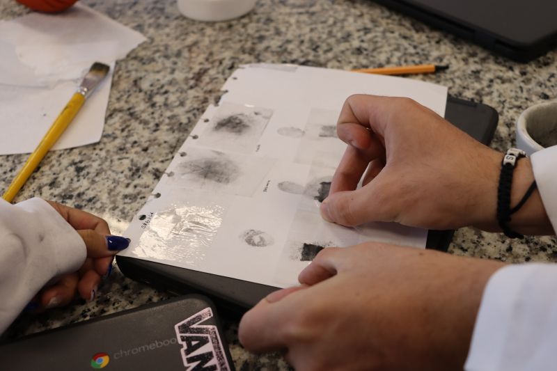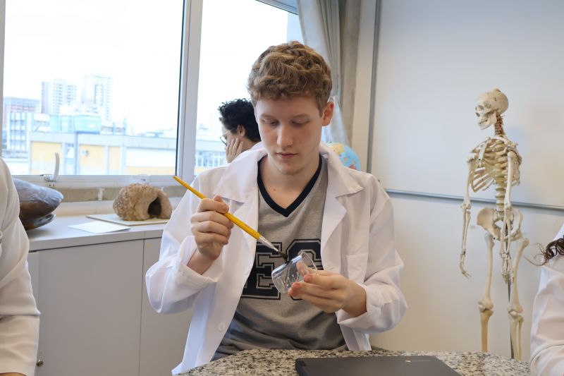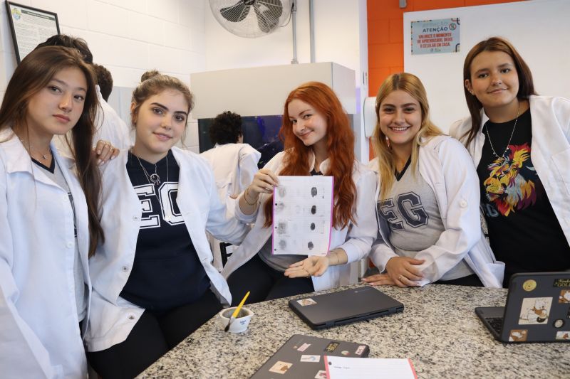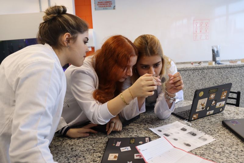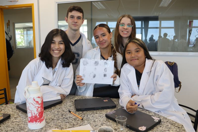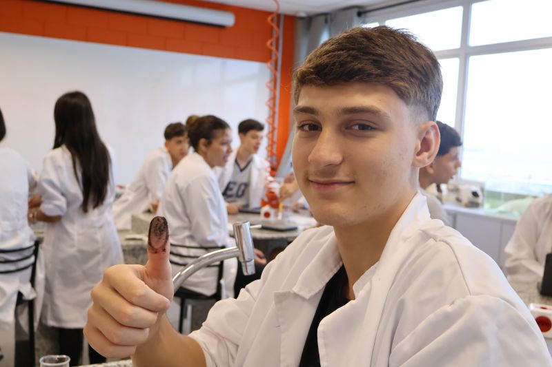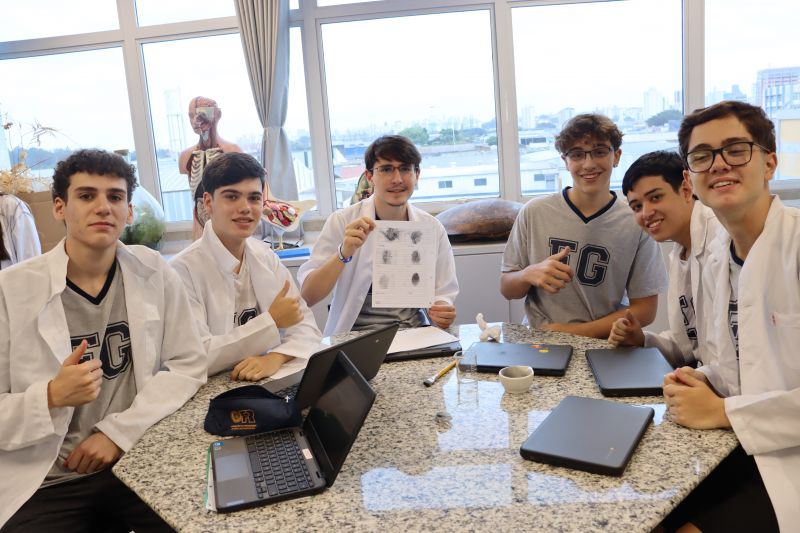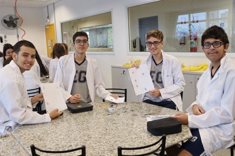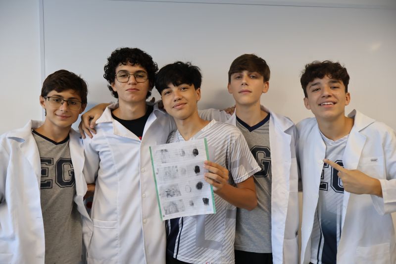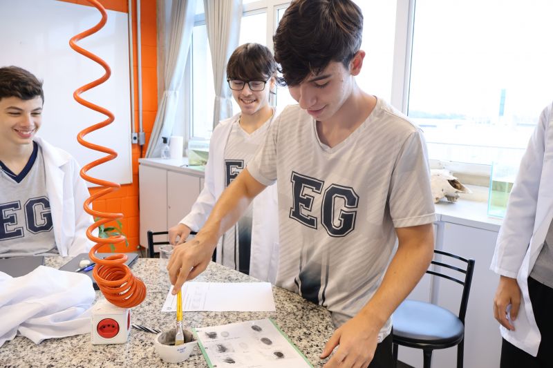 Os alunos da 2ª série do Ensino Médio participaram de uma aula prática, no laboratório, orientados pelo Professor Alex, de Química, com o objetivo de explorar a polaridade das substâncias por meio da impressão digital.