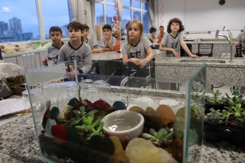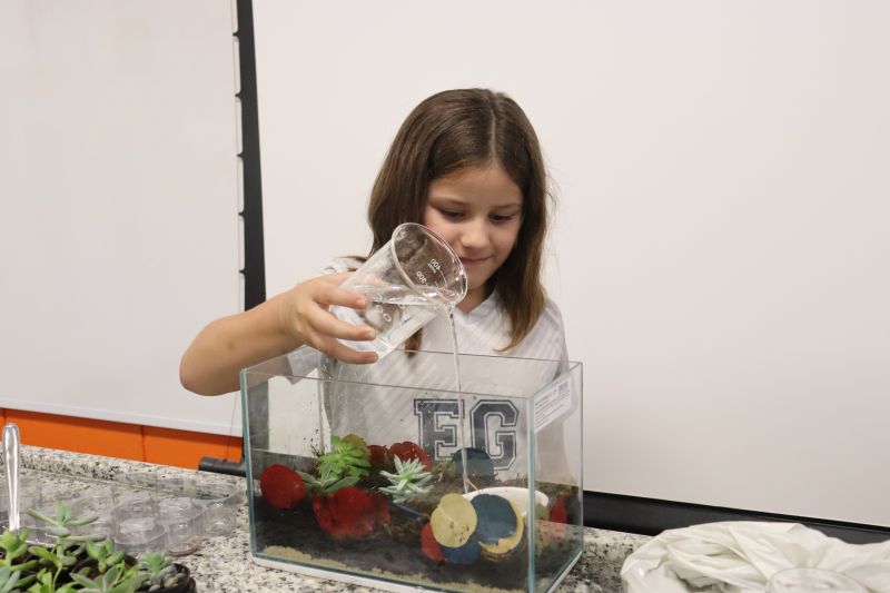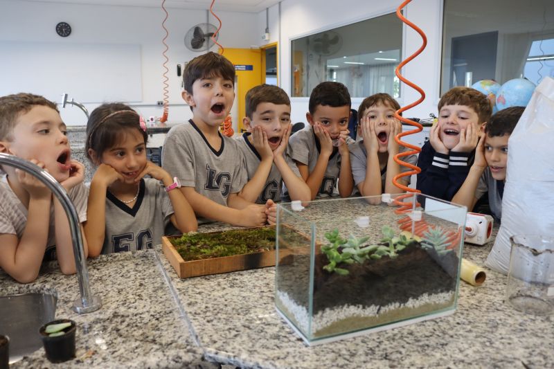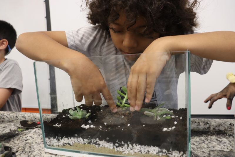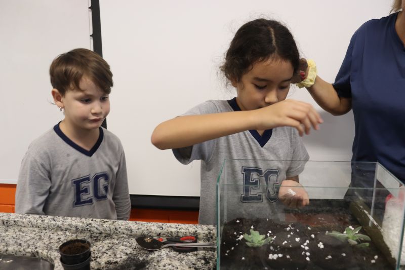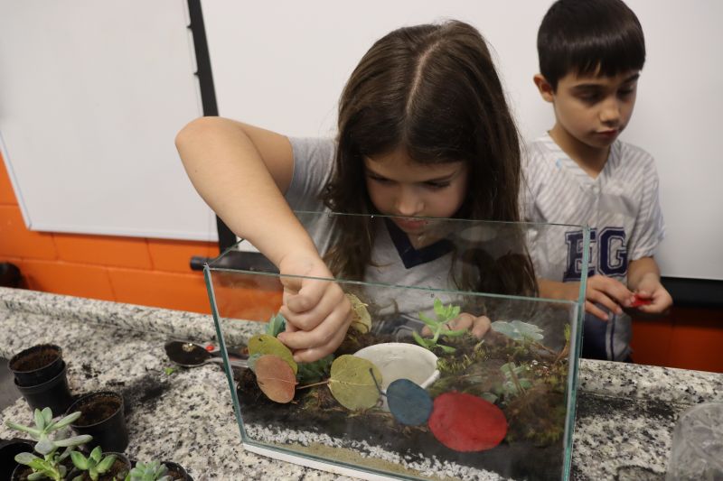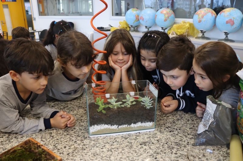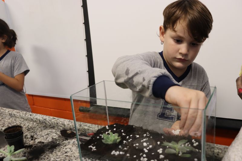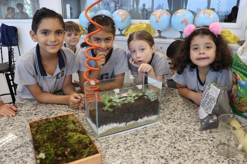 Durante todo o ano letivo, as turmas vão acompanhar o desenvolvimento das plantas e as mudanças que ocorrerão no terrário.