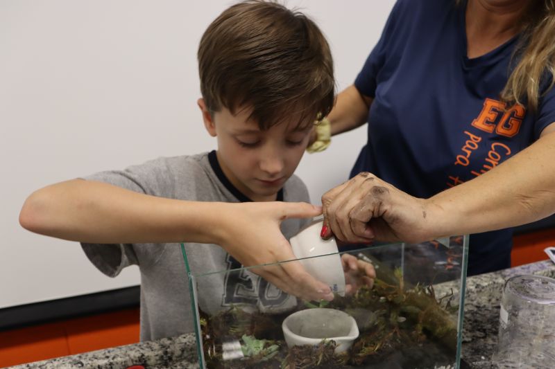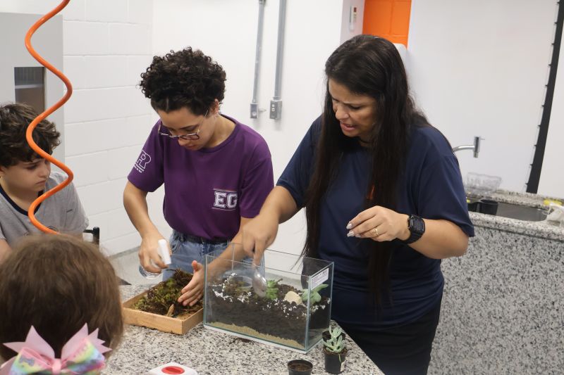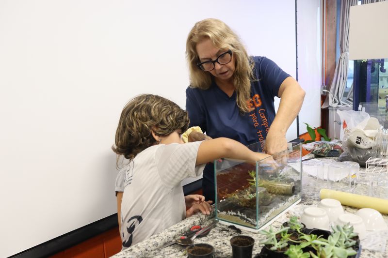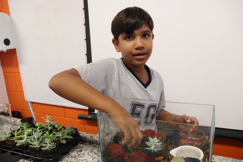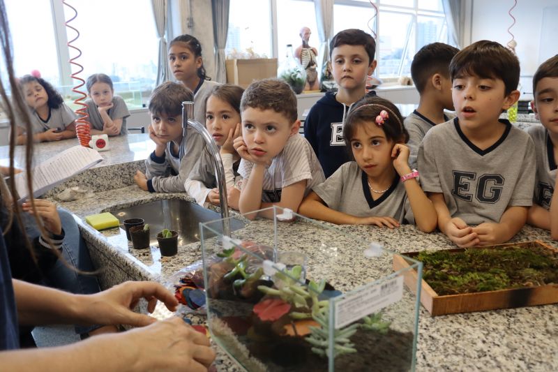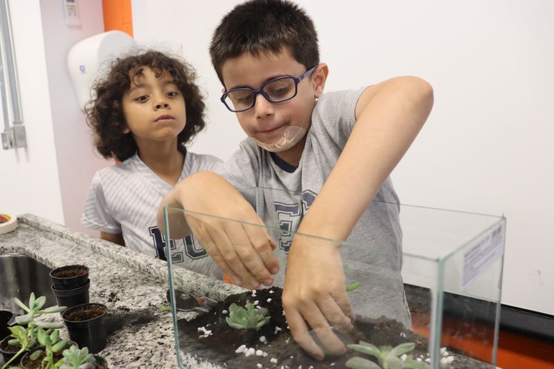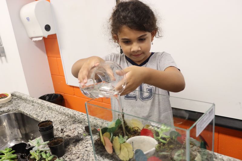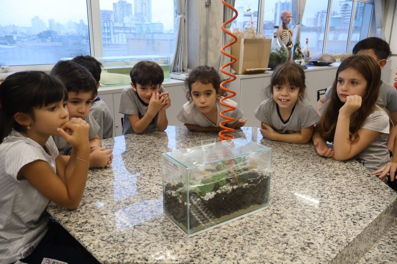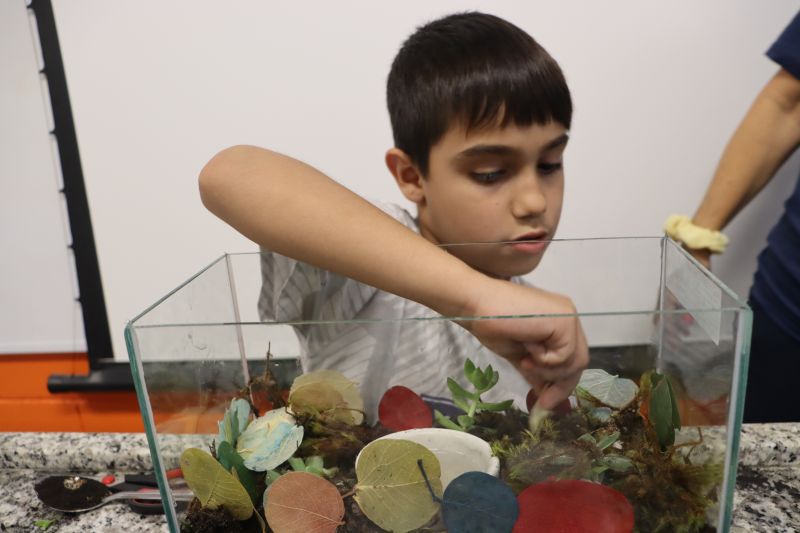 Durante todo o ano letivo, as turmas vão acompanhar o desenvolvimento das plantas e as mudanças que ocorrerão no terrário.