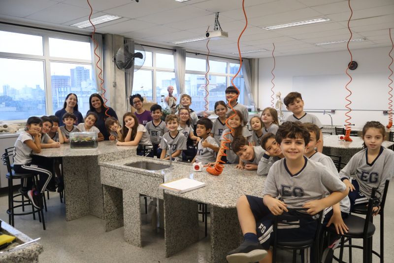 Os alunos do 2º ano do EF, seguindo as orientações das Professoras Juliana, Leila, Maria Cristina e Sheila, confeccionaram um terrário no laboratório.